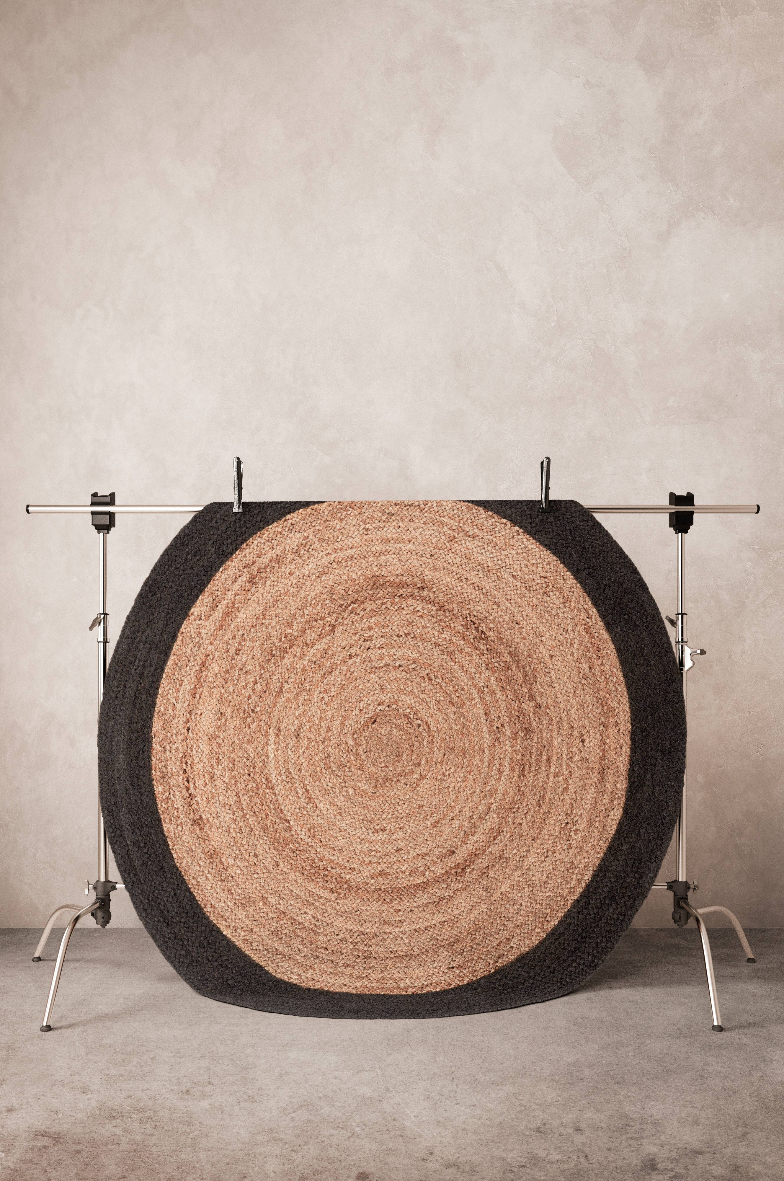 Handgewebter Juteteppich mit kreisförmiger Musterung in natürlichen Farben. ADA zaubert im Handumdrehen eine behagliche Atmosphäre. 2800 g/m².