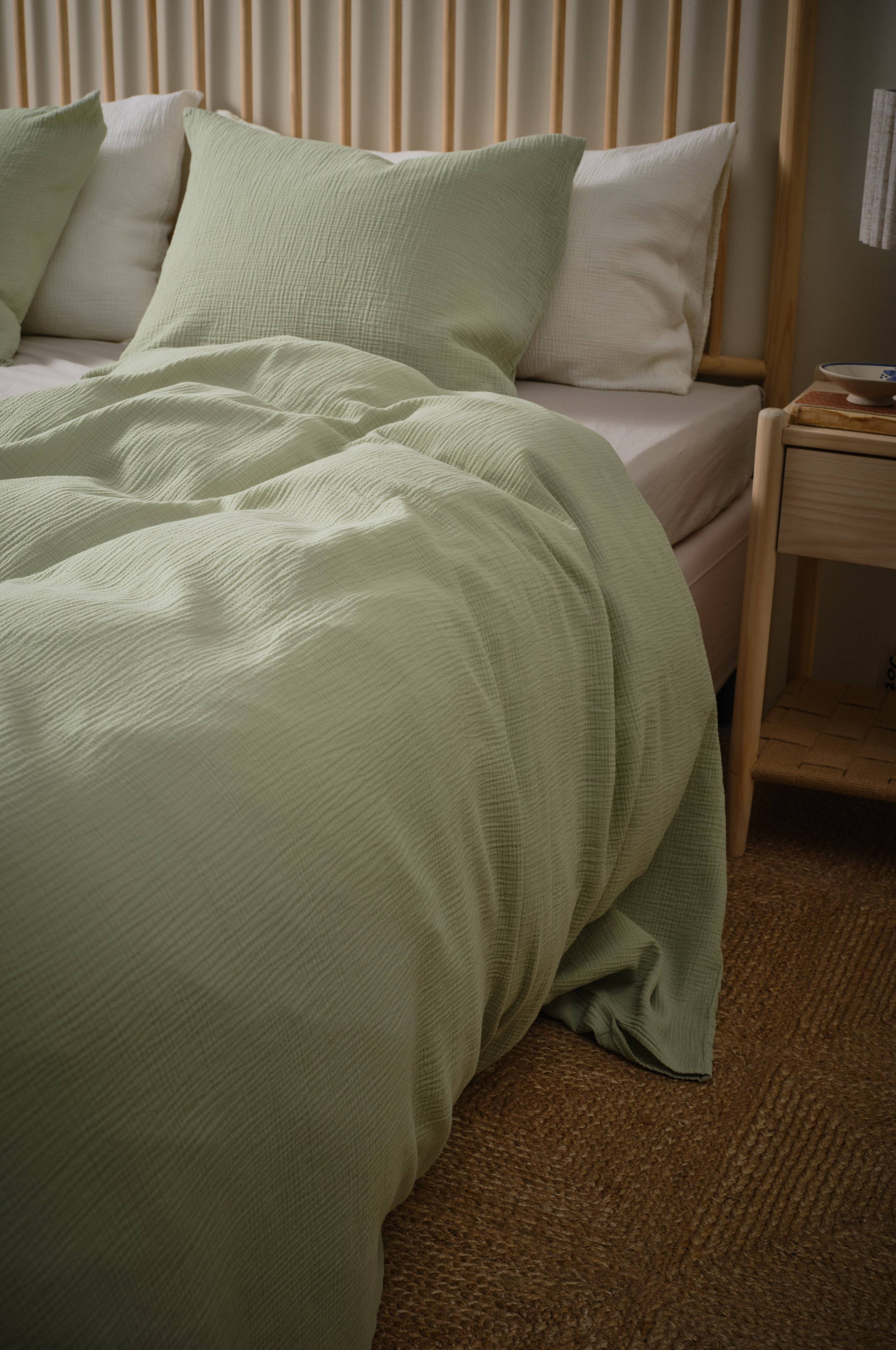 Der Bettbezug AMILIA verleiht jedem Schlafzimmer mit seinem weichen Baumwollmusselin einen einladenden Touch. Die garngefärbte Technik sorgt für einen sanften Vintage-Look und wertet dein Zimmer mit seinem zeitlosen Charme auf. Kombiniere ihn einfach mit den passenden Artikeln aus der AMILIA-Kollektion, um einen einheitlichen und eleganten Look zu erzielen.