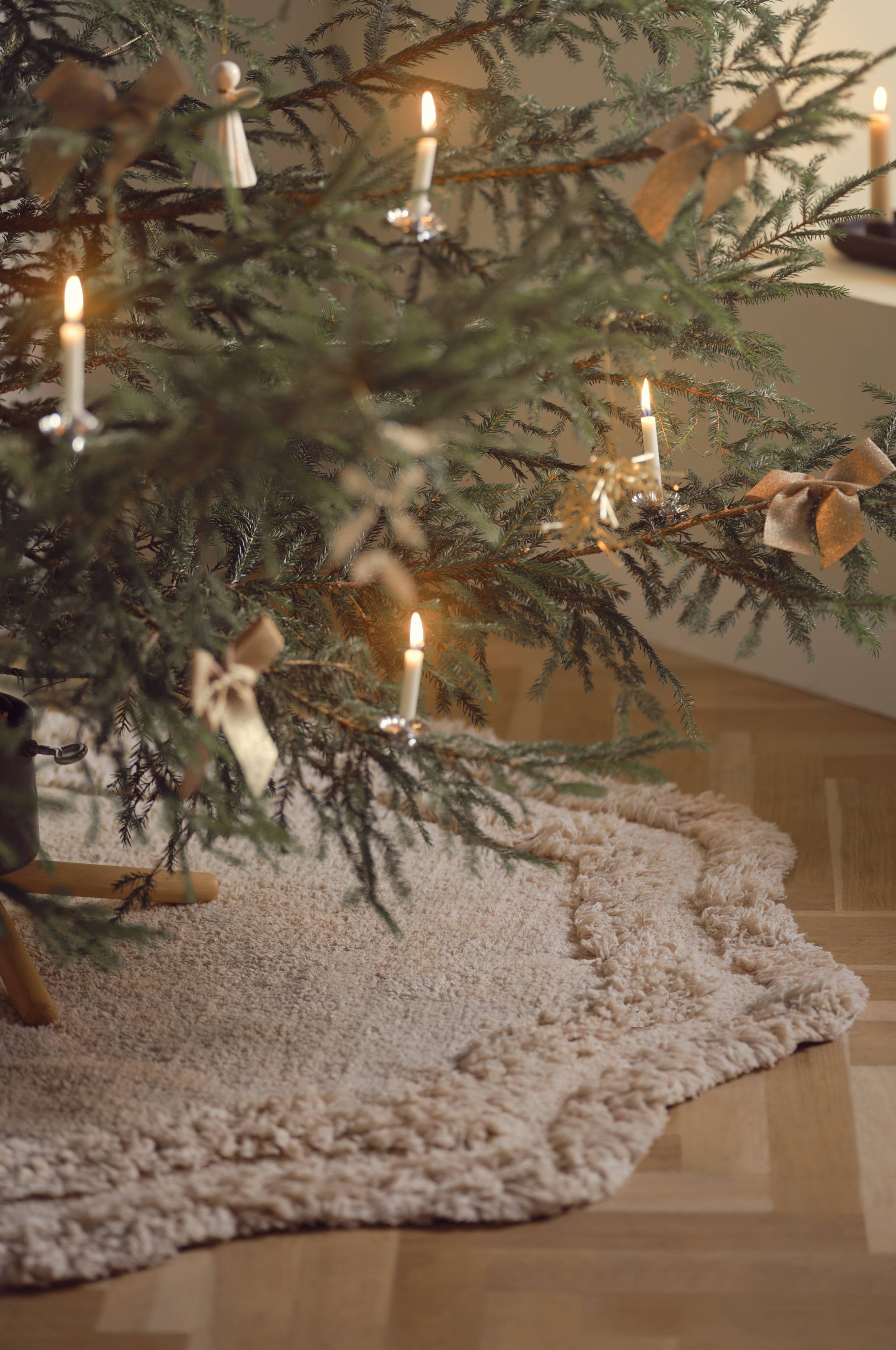 Der runde Teppich ATENA bringt einen Hauch von gemütlichem Charme in jede festliche Umgebung. Dieser getuftete Baumwollteppich hat eine einzigartige Wellenkante und unterschiedliche Florhöhen, die ihm Tiefe und Struktur verleihen. Mit seinem einladenden Design ist er ideal, um ihn unter den Weihnachtsbaum zu legen und die Weihnachtsatmosphäre zu verbessern. Seine weiche Struktur ist eine wunderbare Ergänzung zu deiner Winterdekoration und schafft eine warme und einladende Atmosphäre.