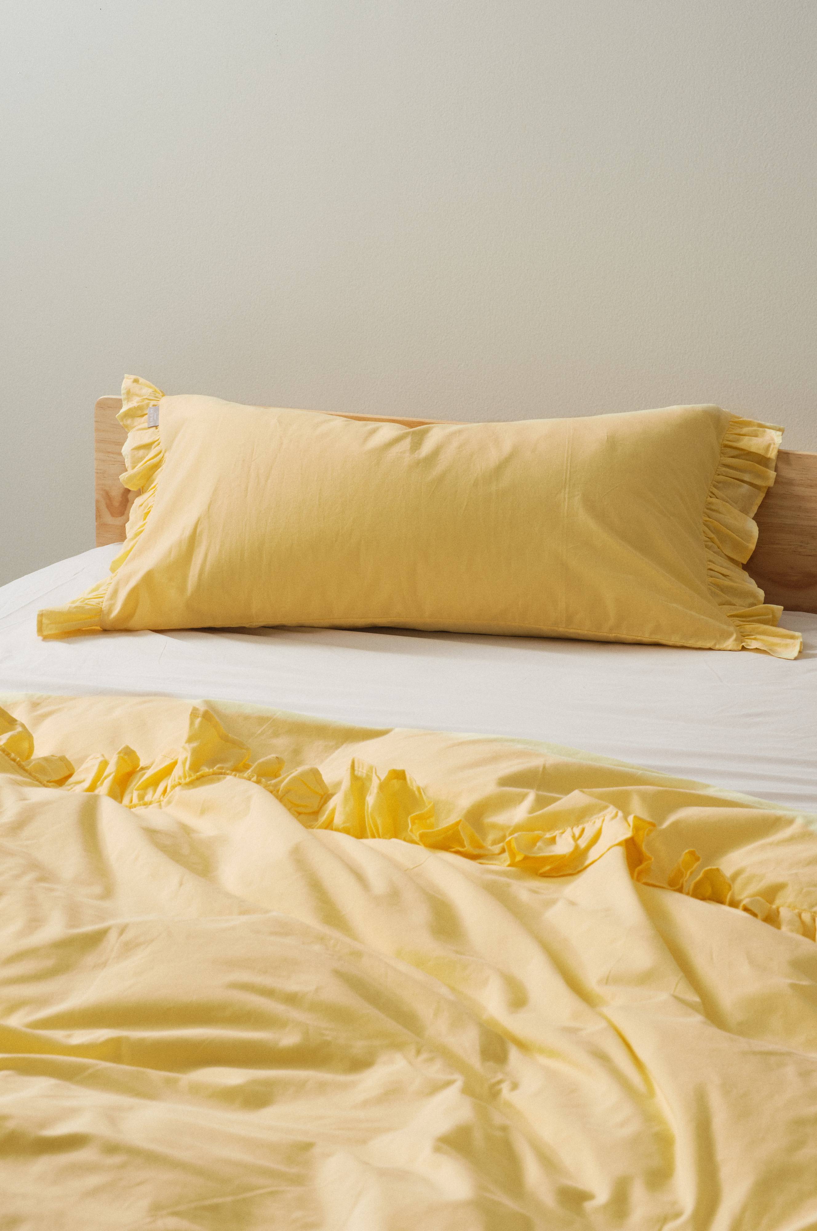 1er-Pack Kopfkissenbezug aus Bio-Baumwolle mit dekorativem Volant. Bettwäsche aus weicher, luftiger Baumwolle sorgt für einen hohen Schlafkomfort. Fadendichte 144 TC. (Mit der Fadendichte bzw. dem TC-Wert (Thread Count) wird die Anzahl der Fäden in Kette und Schuss pro Quadratzoll angegeben. Je höher die Fadendichte, desto höher die Qualität.)