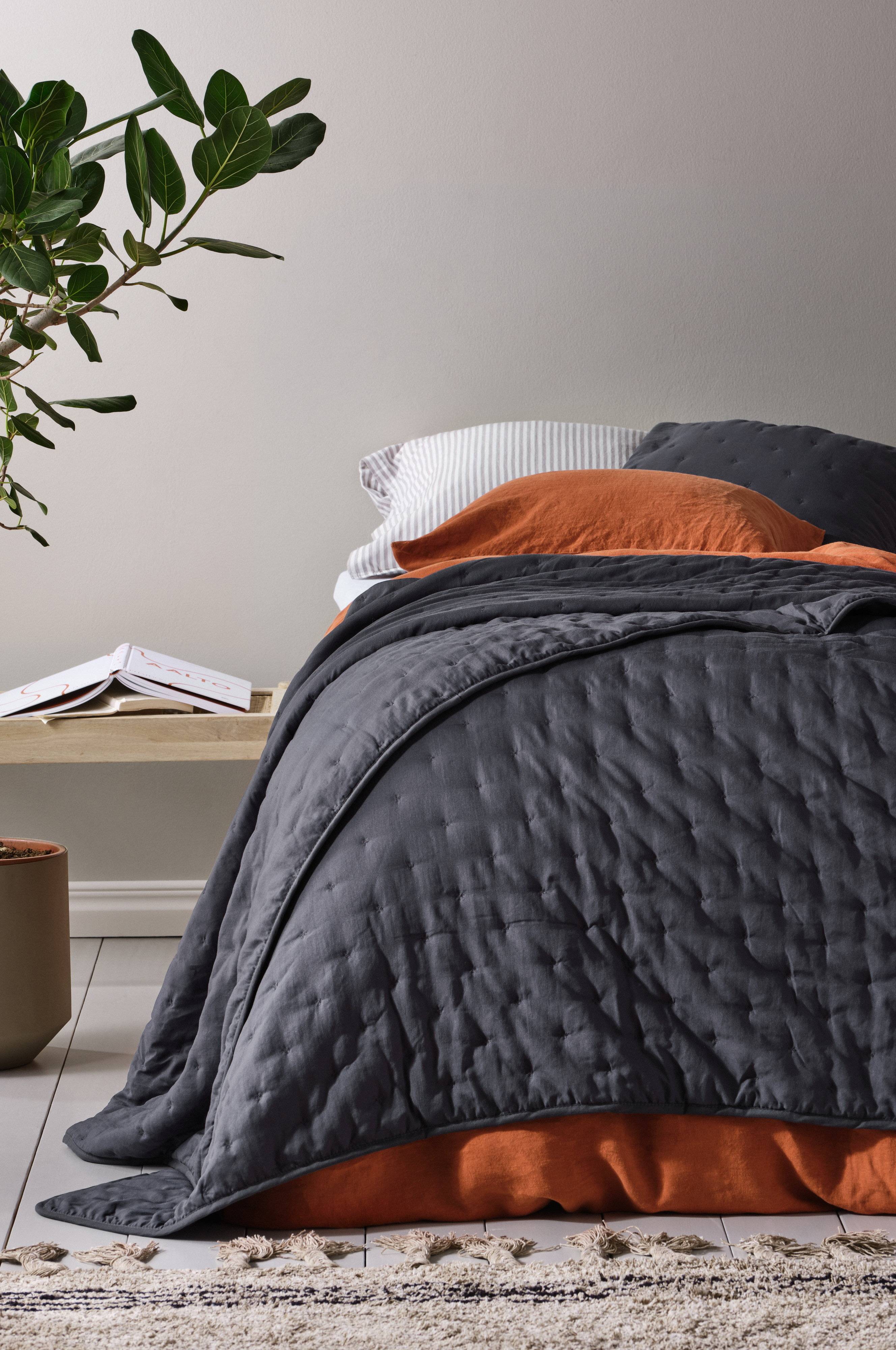 Tipp: Die Tagesdecke CALM wirkt weich und lässig - wer diesen Stil unterstreichen möchte, dekoriert das Bett zusätzlich mit vielen Kissen.