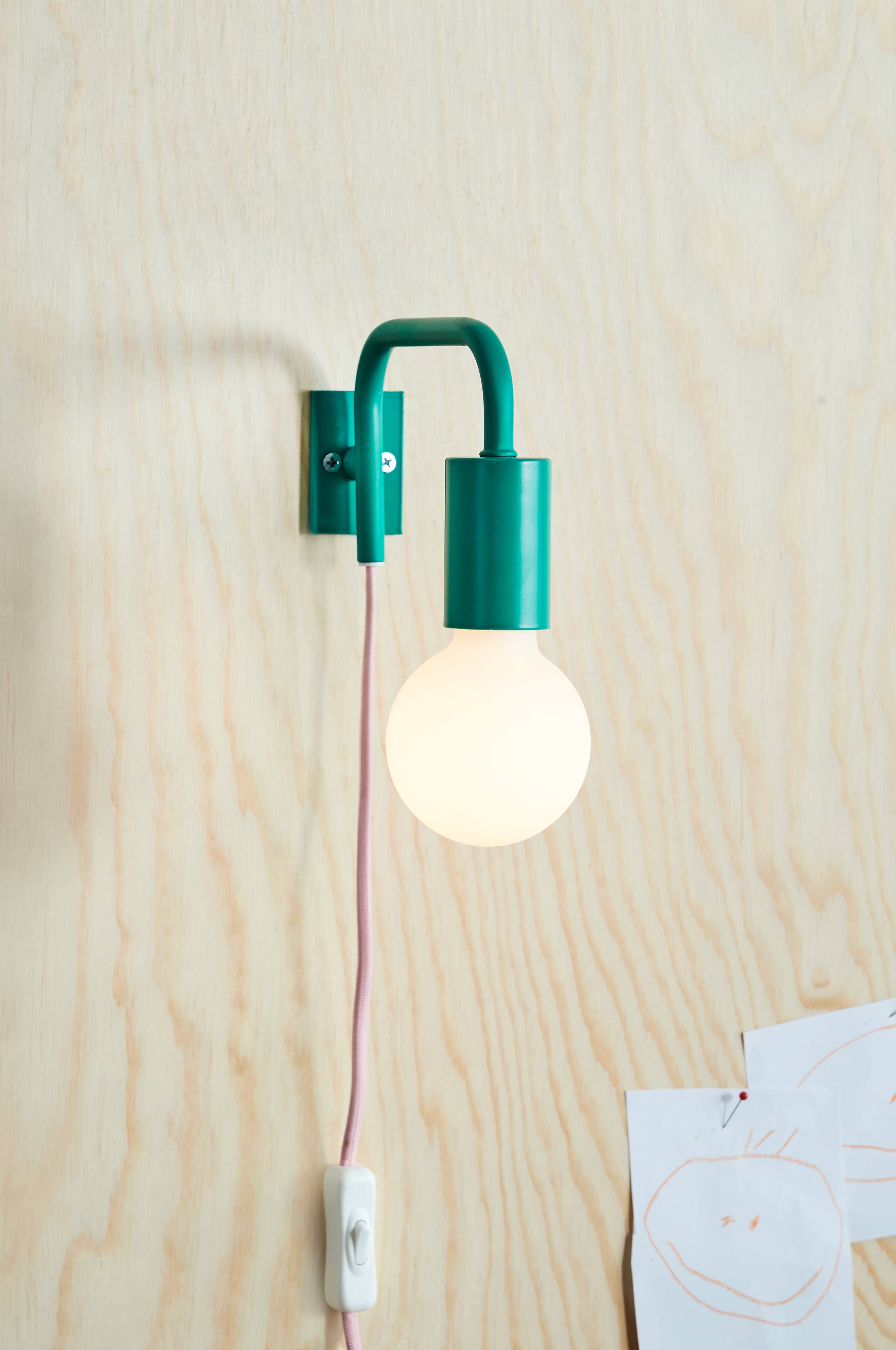 Wandleuchte aus Metall in knalligen Farben. Die Leuchte ist ein toller Blickfang an der Wand über dem Schreibtisch oder dem Bett und kann mit einem Leuchtmittel beliebig variiert werden. Textilkabel 1,8 m.