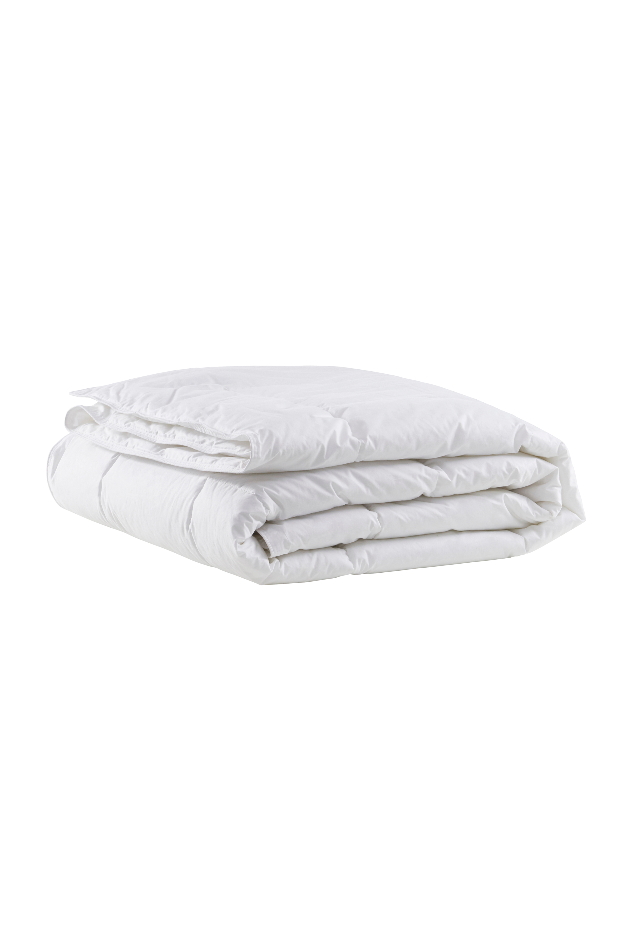 Kühle Doppelbettdecke aus weicher Bio-Baumwolle. Füllung aus Daunenimitat, das sich wie Daune anfühlt, aber die Vorteile von Polyester bietet und damit pflegeleicht und immer angenehm ist. Die Decke verfügt über gesteppte Kammern, damit die Füllung nicht verrutschen kann. Die Decke wurde vorbehandelt und schrumpft somit beim Waschen nicht. Das Modell wird in einer praktischen Stofftasche geliefert. Gewicht 1100 g.