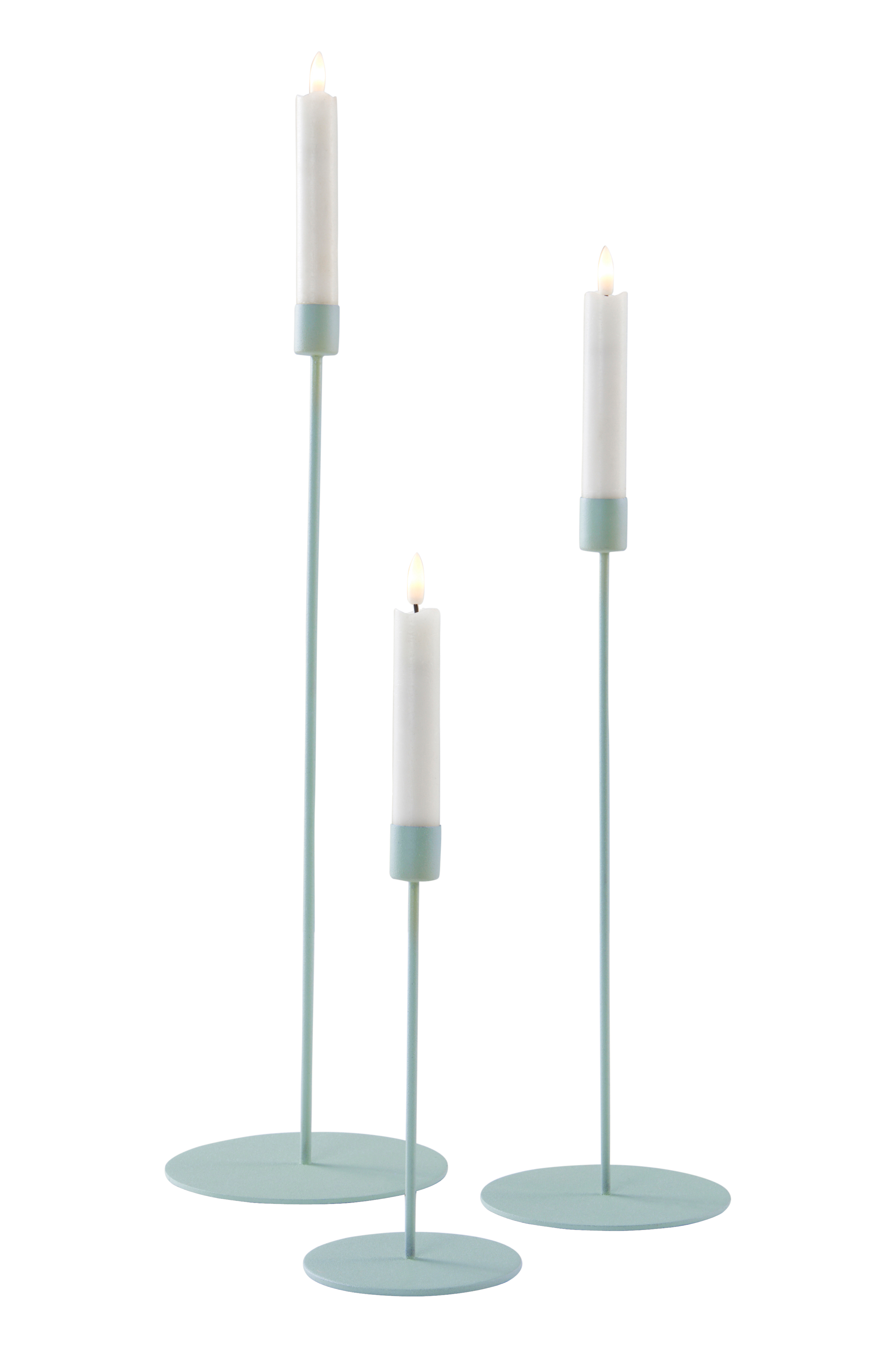 3er-Pack schmale Kerzenleuchter aus pulverbeschichtetem Eisen. Ebenso fest- wie alltagstauglich.