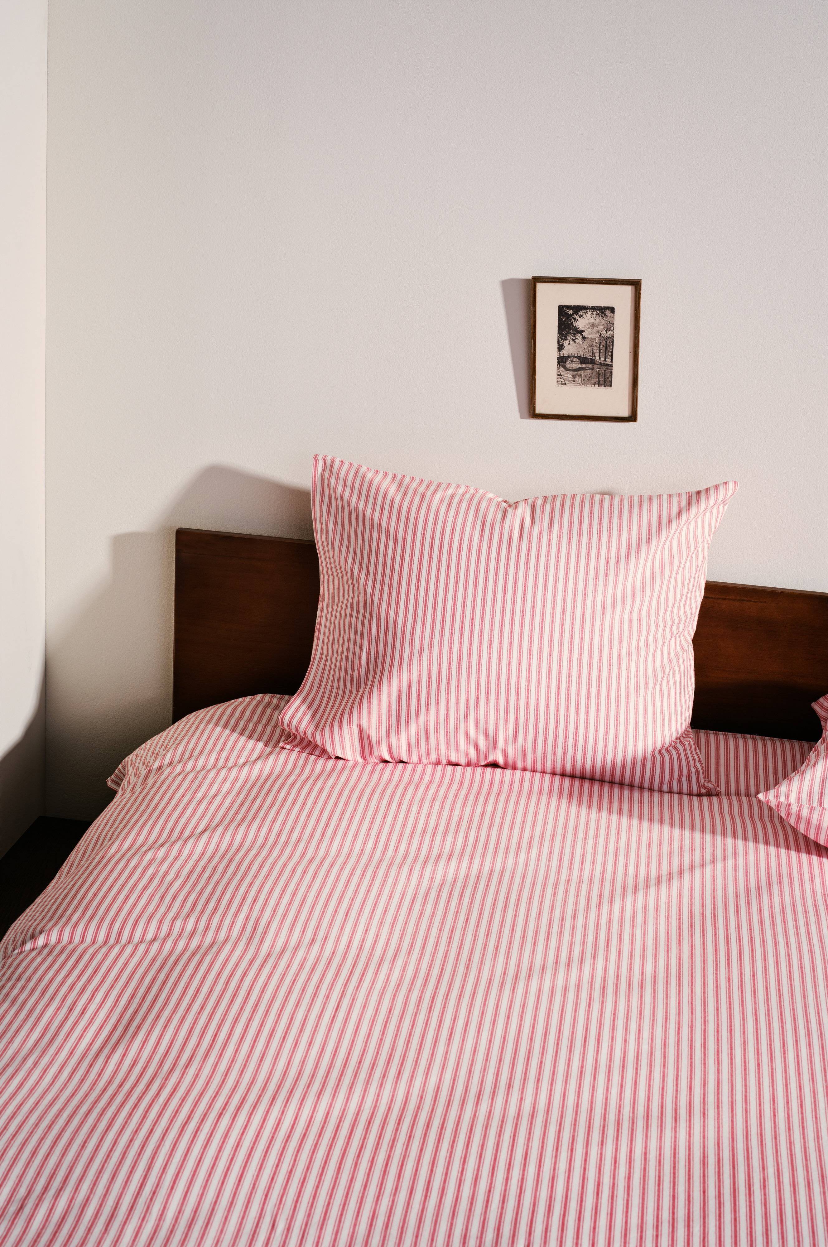 Der ESSA-Bettbezug aus Bio-Baumwolle bietet Komfort und Atmungsaktivität. Das garngefärbte Streifendesign wertet die Einrichtung mit dezenter Textur auf. Er ist vorgewaschen und gebrauchsfertig und eignet sich perfekt, um ein gemütliches Ambiente in deinem Schlafzimmer zu schaffen. Konzipiert für Einzelbetten.
