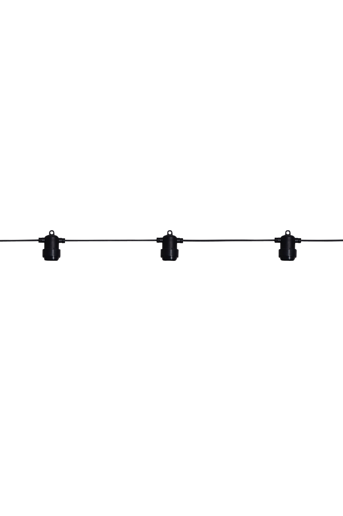 Ein komplettes System für die Garten-, Party- oder Weihnachtsbeleuchtung für den Außengebrauch. Die Lichterkette verfügt über 8 E27-Lampenhalterungen.