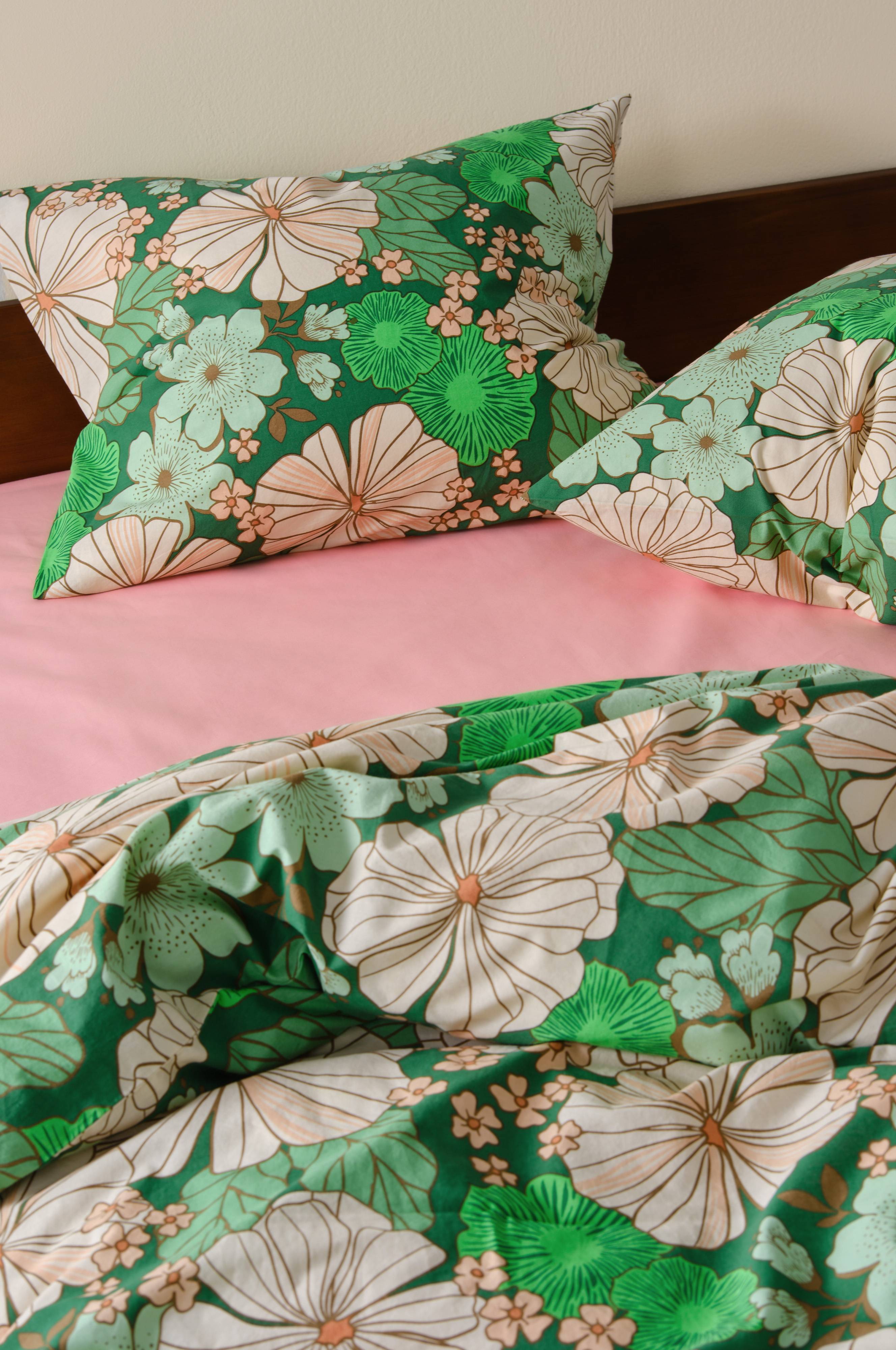 1-Pack Kissenbezüge in feinfädiger, dicht gewebter Baumwollqualität. Der Stoff ist mit einem hübschen Blumenmuster in einer schönen Farbpalette bedruckt. Er ist außerdem enzymgewaschen, was ihm eine angenehme Weichheit und ein leicht abgenutztes Gefühl verleiht.