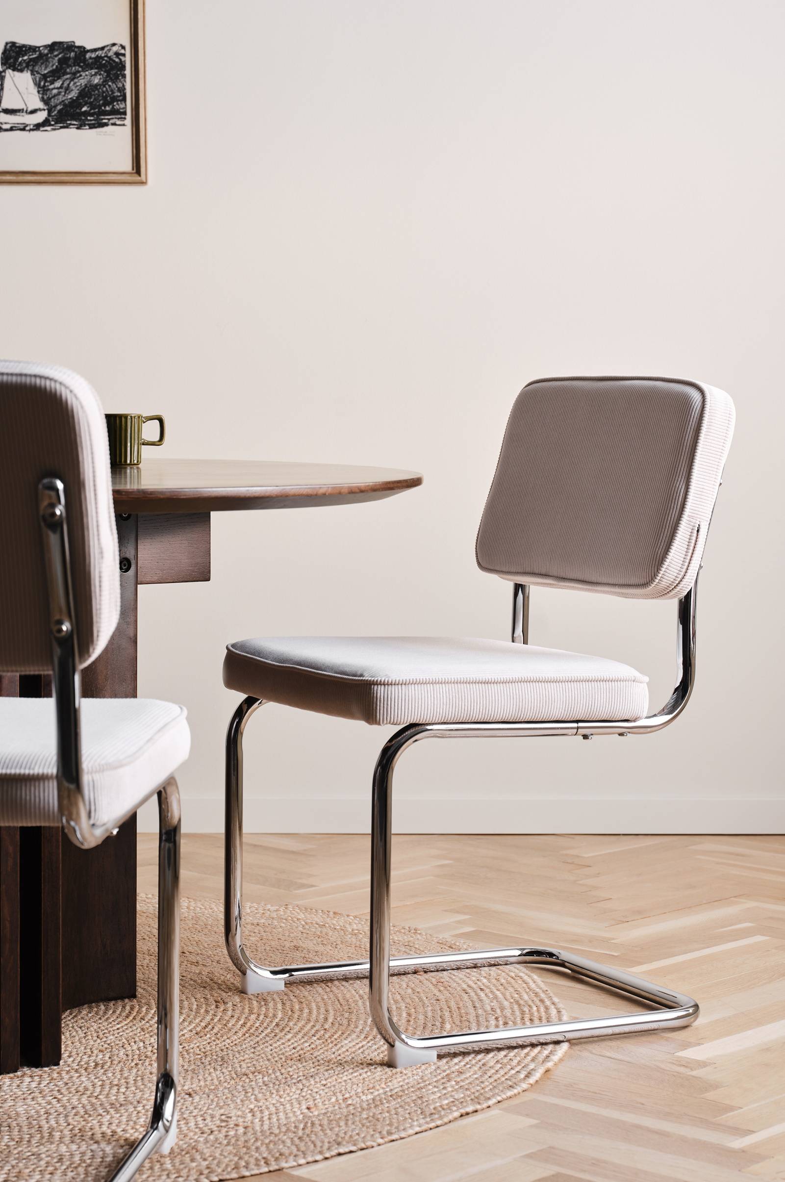 Die Küchenstühle von HJO bringen mit ihrem schlichten, minimalistischen Design ein stilvolles Flair in deine Küche. Mit ihrem modernen Metallrahmen und der bequemen Sitzfläche sind diese Stühle perfekt für jedes Zuhause. Ihre klaren Linien und subtilen Kurven machen sie zur idealen Wahl, um deiner Einrichtung einen schicken, modernen Touch zu verleihen. Perfekt für alle, die Wert auf Design und Komfort legen.