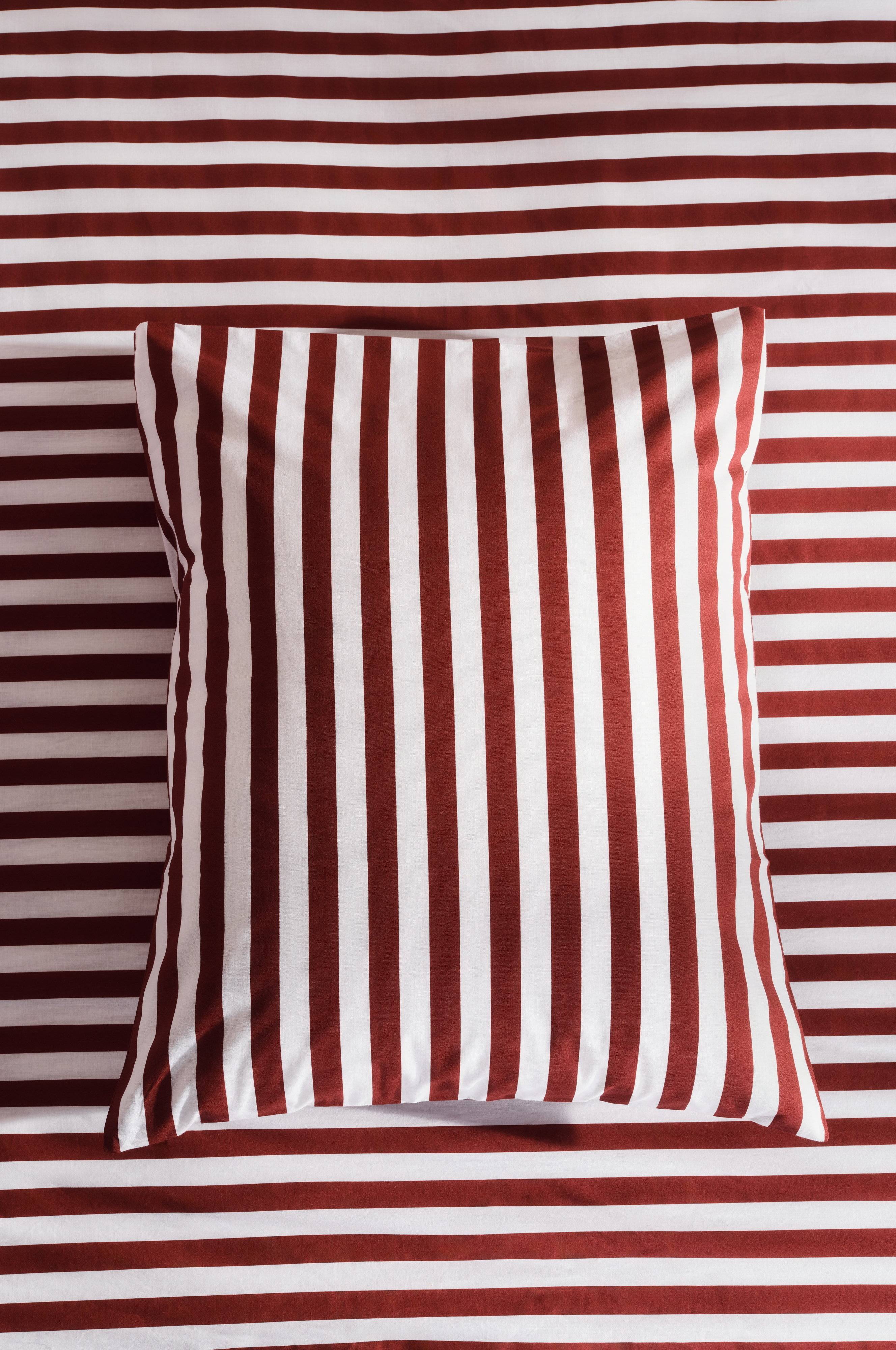 Gestreifter Kopfkissenbezug aus Baumwolle. Ein Print mit Querstreifen in sommerlichen Farben ziert beide Seiten dieses Kopfkissenbezugs. Die behagliche, weiche Baumwollqualität fühlt sich angenehm kühl an. Fadendichte 144 TC. (Mit der Fadendichte bzw. dem TC-Wert (Thread Count) wird die Anzahl der Fäden in Kette und Schuss pro Quadratzoll angegeben. Je höher die Fadendichte, desto höher die Qualität. Eine Ausnahme bildet Leinen, denn hier möchte man oft durch etwas lockereres Weben die gewünschte Haptik erzielen.)