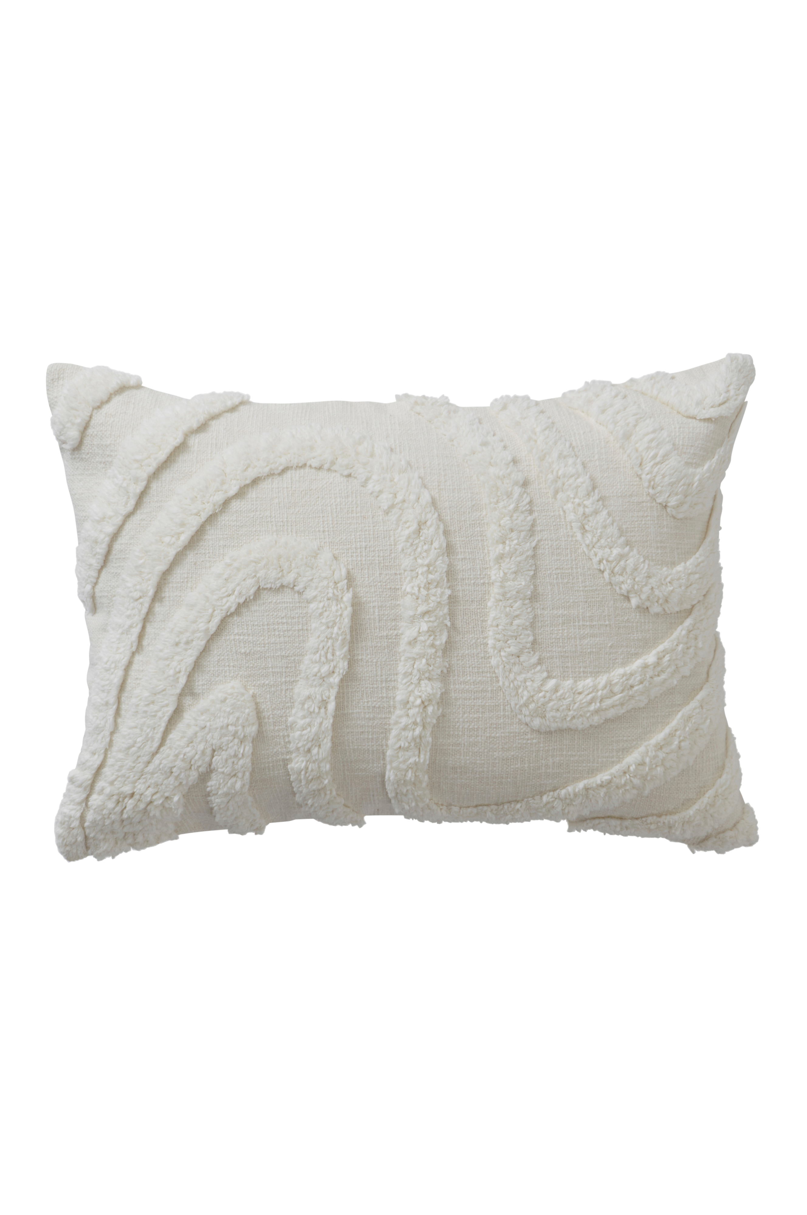Ein kurzer Flor auf einem kräftigen Gewebe mit Slub-Effekt bildet das getuftete Wellenmuster dieser Kissenhülle. Gefütterte Vorderseite. Naturweiße gewebte Rückseite mit verdecktem Reißverschluss.