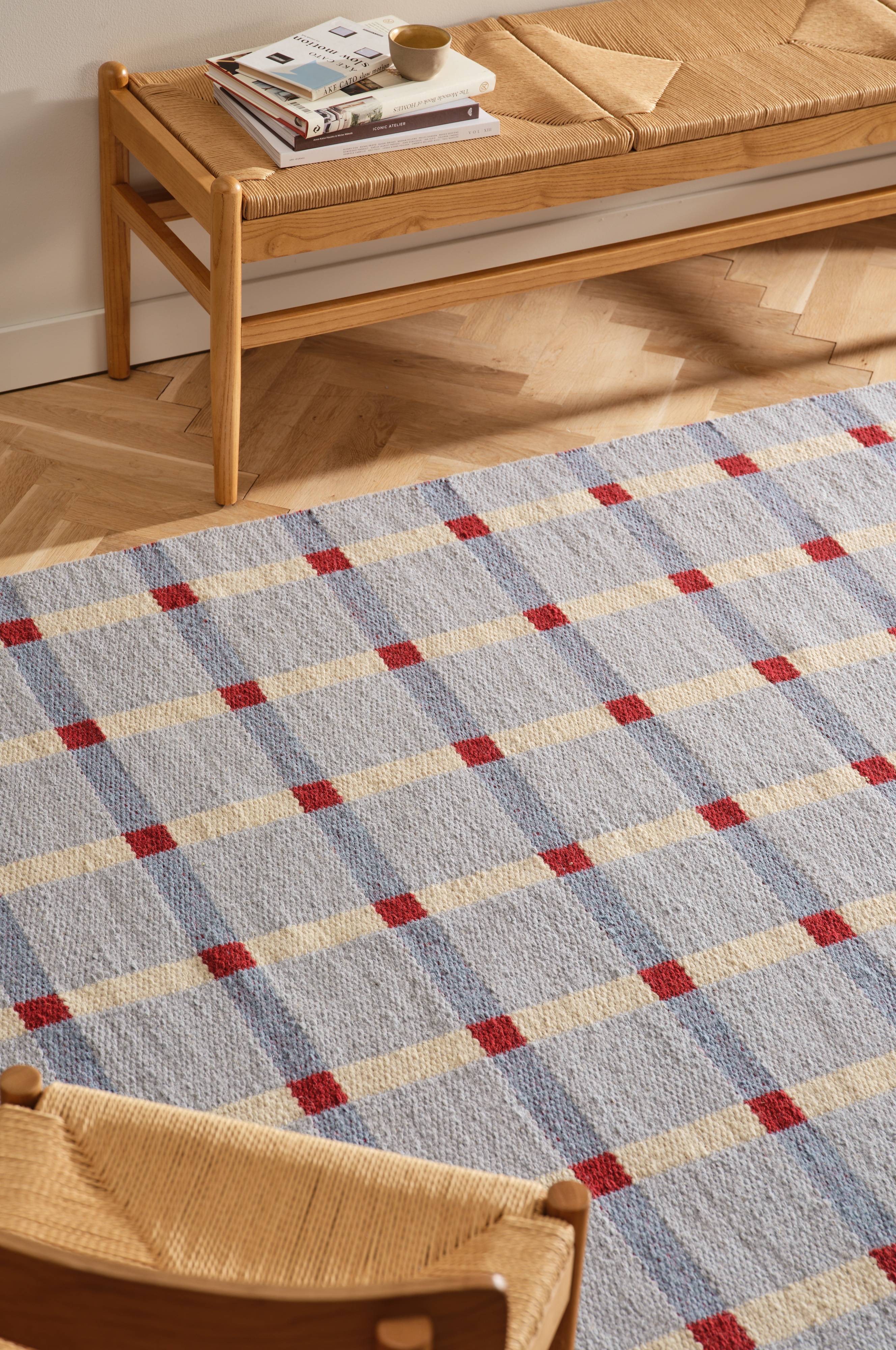 Der Wollteppich MARE verleiht jedem Wohn- oder Schlafzimmer einen zeitlosen Touch. Dieser mit Präzision handgewebte Wendeteppich zeigt ein elegantes Karomuster mit einem umgekehrten Muster auf der Rückseite, das für Vielseitigkeit und Charme sorgt. Er eignet sich perfekt für ein gemütliches Ambiente und setzt mit seiner aufwändigen Verarbeitung einen einzigartigen Akzent in deinem Zuhause. Dieser Teppich ist ideal für alle, die ein durchdachtes und klassisches Design zu schätzen wissen.
