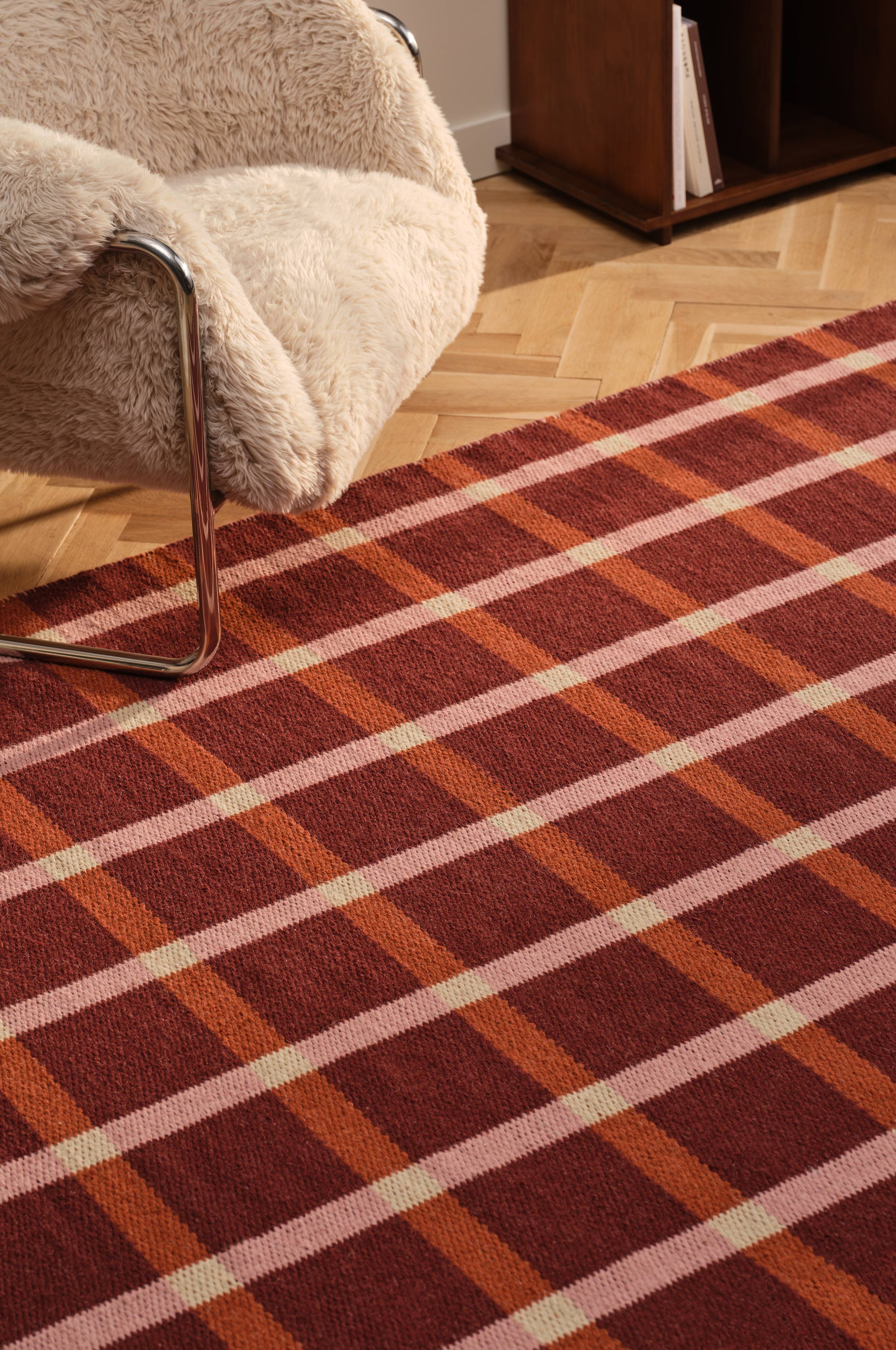 Der Wollteppich MARE verleiht jedem Wohn- oder Schlafzimmer einen zeitlosen Touch. Dieser mit Präzision handgewebte Wendeteppich zeigt ein elegantes Karomuster mit einem umgekehrten Muster auf der Rückseite, das für Vielseitigkeit und Charme sorgt. Er eignet sich perfekt für ein gemütliches Ambiente und setzt mit seiner aufwändigen Verarbeitung einen einzigartigen Akzent in deinem Zuhause. Dieser Teppich ist ideal für alle, die ein durchdachtes und klassisches Design zu schätzen wissen.