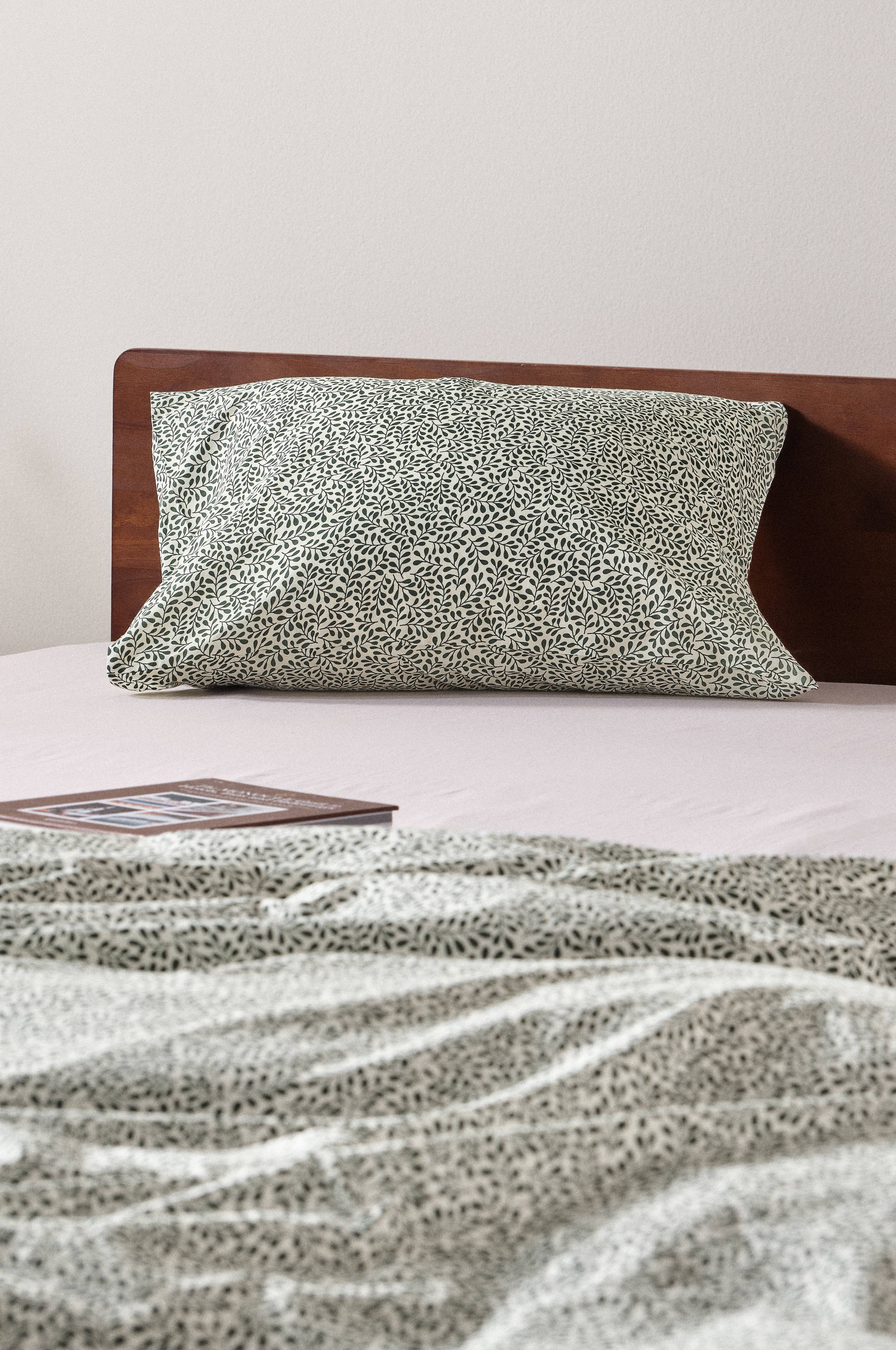 Kopfkissenbezug aus herrlicher Baumwolle. Der Musterprint unserer Bettwäscheserie MISTEL verströmt dezente Weihnachtsstimmung. In der weichen Baumwollqualität schlummert es sich überaus behaglich. Fadendichte 144 TC. (Mit der Fadendichte bzw. dem TC-Wert (Thread Count) wird die Anzahl der Fäden in Kette und Schuss pro Quadratzoll angegeben. Je höher die Fadendichte, desto besser die Qualität.)