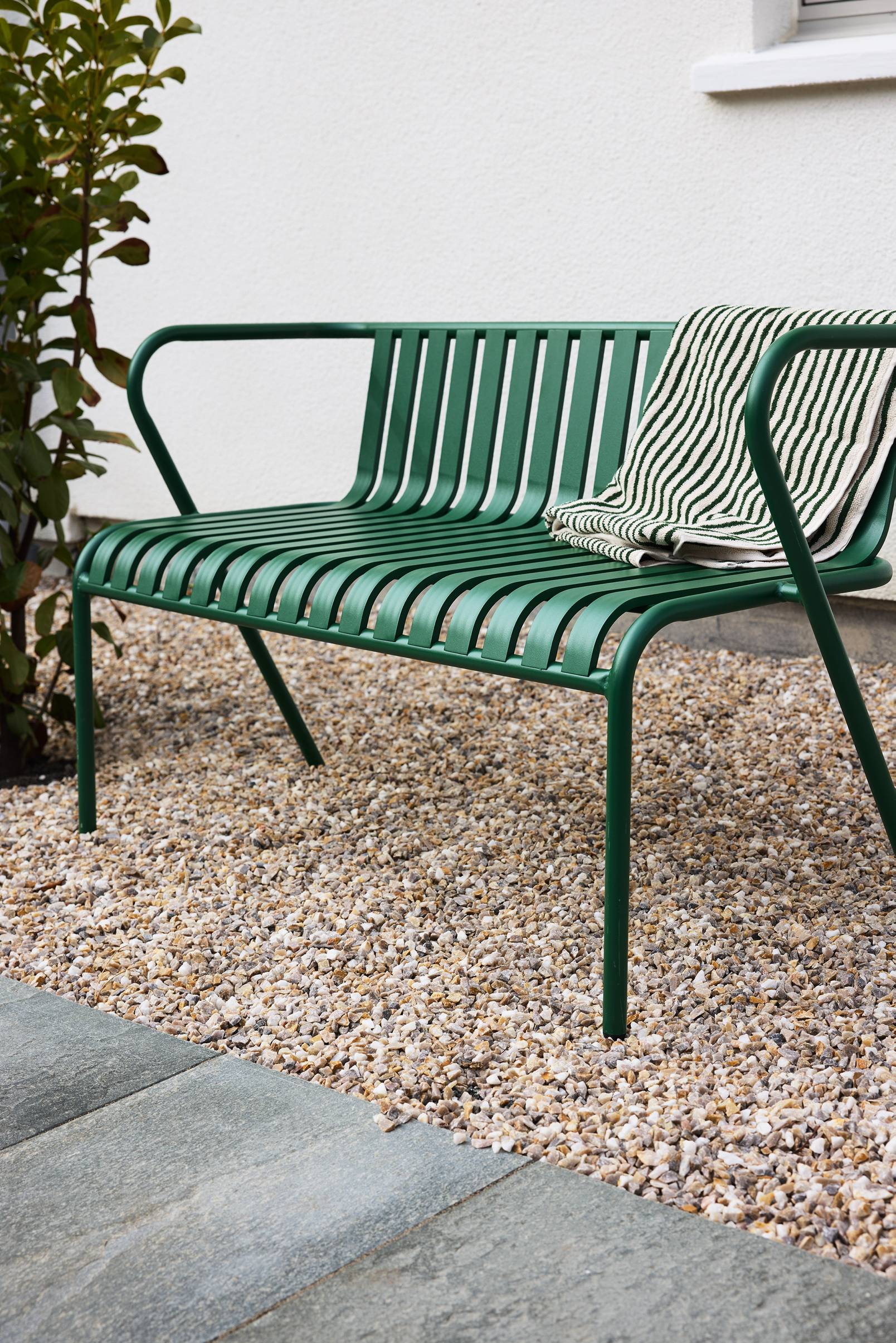 Ein leichtes, schlichtes Outdoor-Sofa, das Sonne, Wind und Wasser standhält.