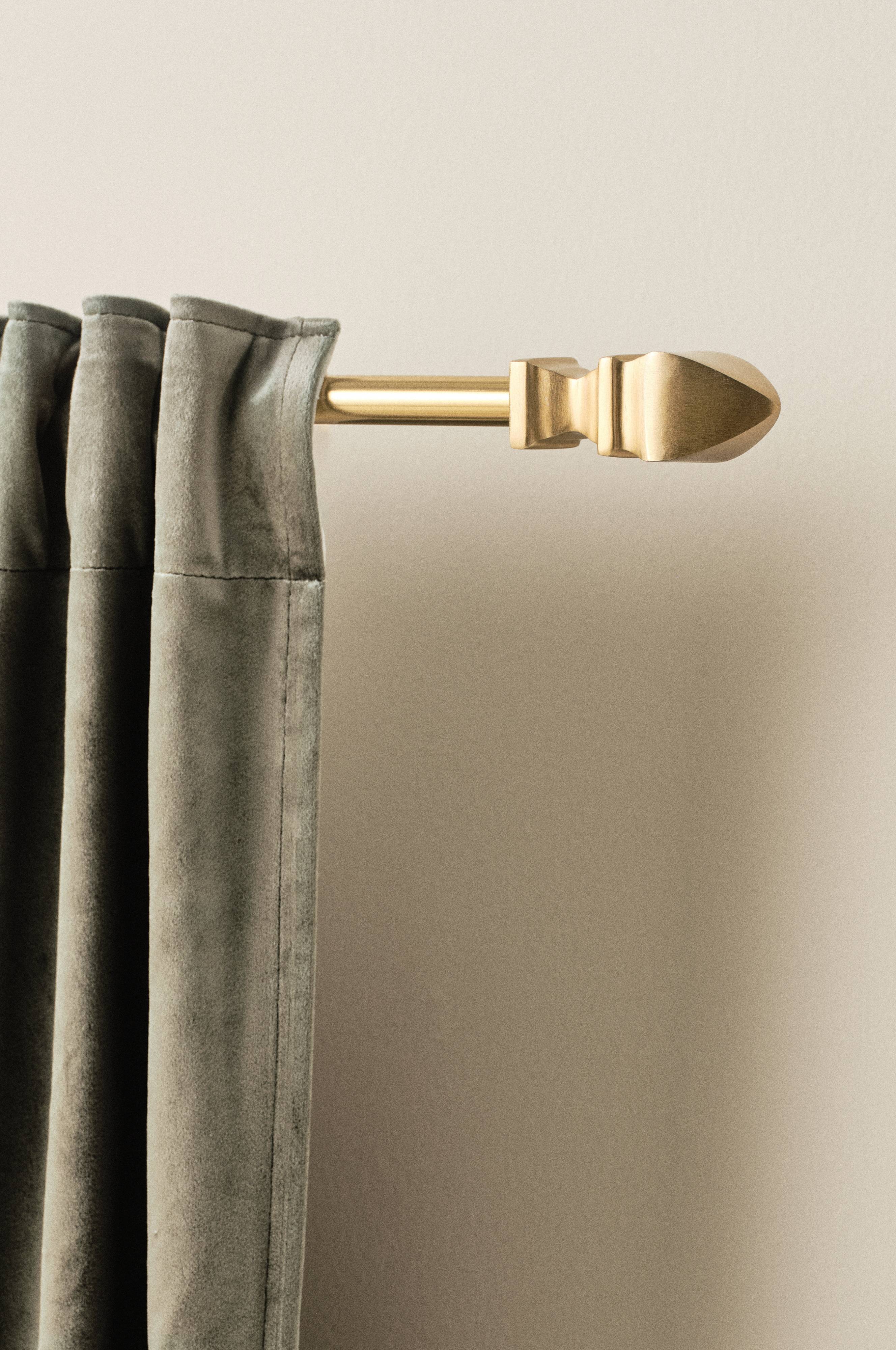 Gardinenstange aus Stahl mit Endstücken aus Aluminiumguss. Die klassisch-eleganten Endstücke passen sich den verschiedensten Einrichtungsstilen an. Die Endstücke werden auf die Gardinenstange aufgeschraubt. Inklusive 3 Wandhaltern, Dübel und Schrauben.