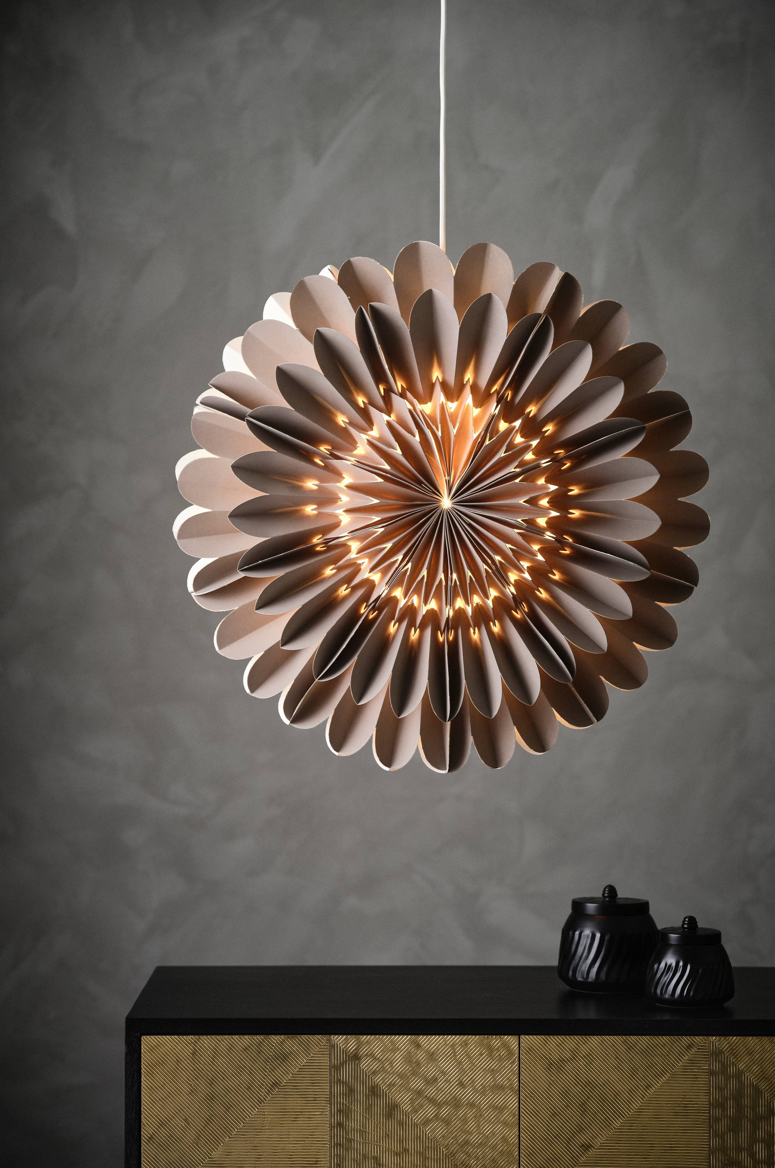 Der Stern wurde in einer schönen Verpackung schnell geliefert . Sieht im Fenster sowie an der Wand wunderschön aus.