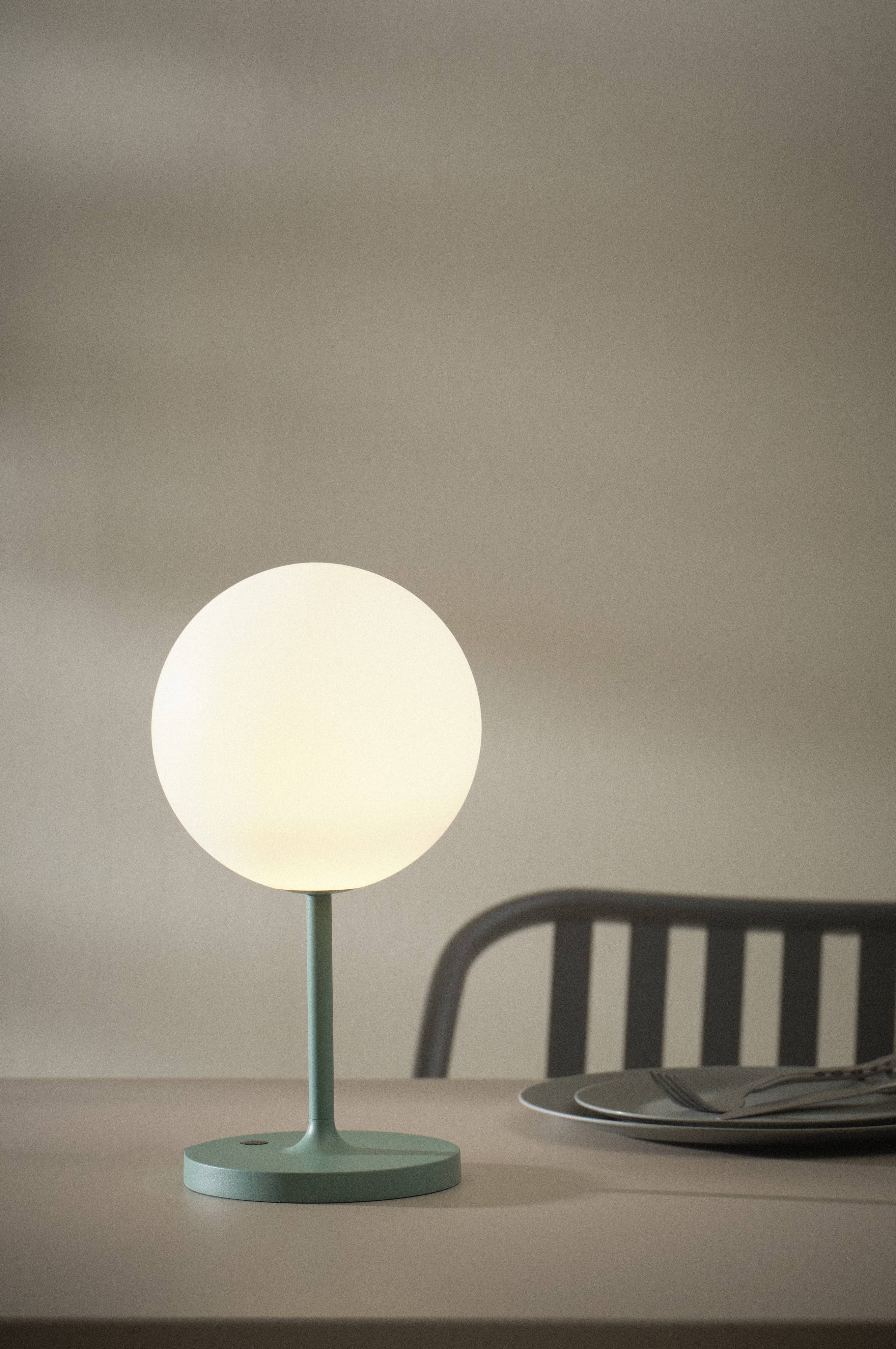 Wiederaufladbare Tischlampe für den Außenbereich. Der Sockel besteht aus Aluminium, einem rostfreien Material, und der Schirm ist aus Kunststoff. Dieses Modell hat einen stufenlosen Dimmer mit Ein-/Aus-Schalter am Lampensockel. Der integrierte Lithium-Akku wird per USB-Kabel aufgeladen, das an einem Ende einen USB-Anschluss und am anderen Ende einen USB-C-Anschluss hat. Selbstverständlich kann die Lampe auch drinnen verwendet werden.