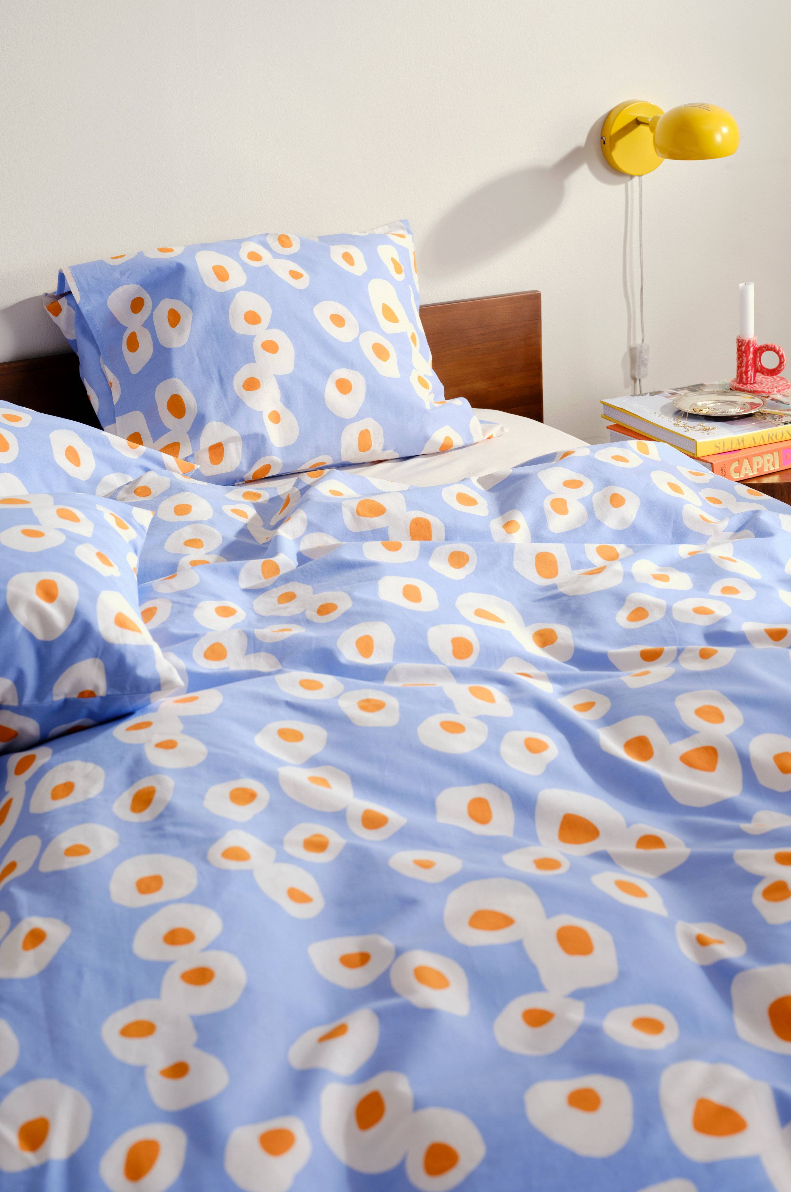 Der Bettbezug OVO bietet einen charmanten Retro-Look für jedes Schlafzimmer. Der aus ökologischer Baumwolle gefertigte Bettbezug ist mit einem unverwechselbaren Pigmentdruckmuster versehen, das von der talentierten Maria Carlberg entworfen wurde. Inspiriert von verspielten Spiegeleimotiven, bringt er einen Hauch von Nostalgie in deine Einrichtung. Der OVO-Bettbezug verbindet mühelos kühne Designelemente mit kuscheliger Wärme und ist perfekt für alle, die ihrem Raum ein trendiges Retro-Feeling verleihen wollen.