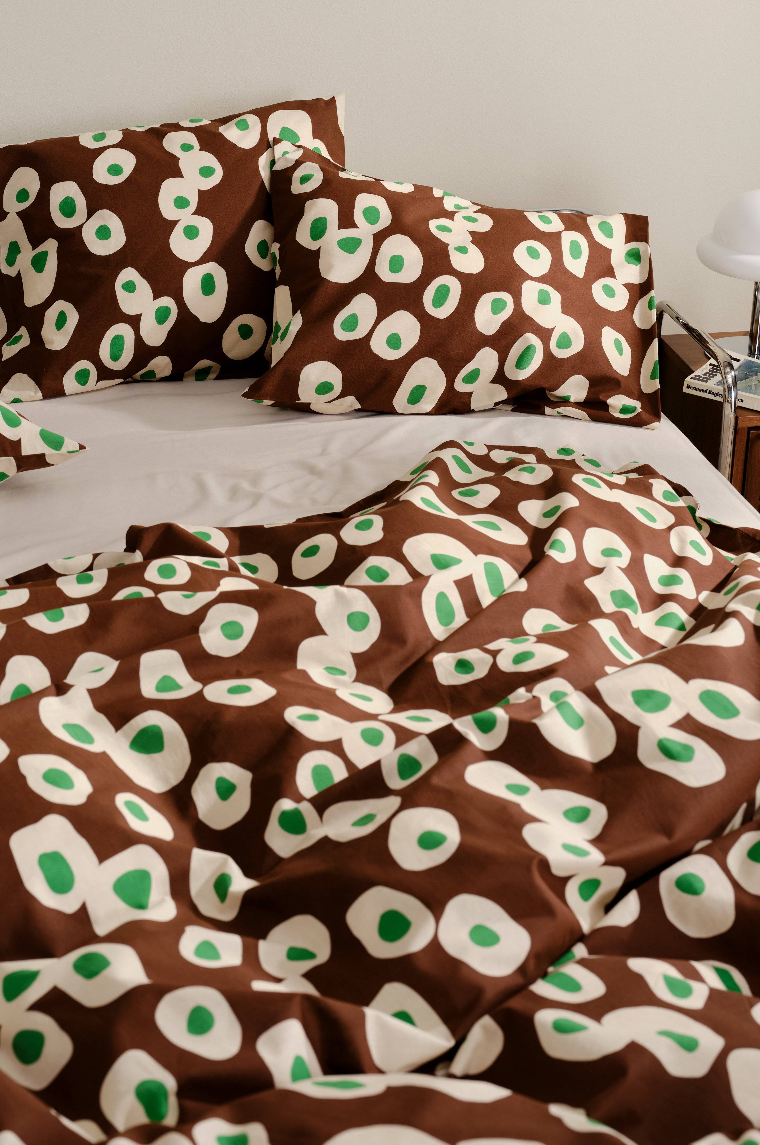 Der Bettbezug OVO bietet einen charmanten Retro-Look für jedes Schlafzimmer. Der aus ökologischer Baumwolle gefertigte Bettbezug ist mit einem unverwechselbaren Pigmentdruckmuster versehen, das von der talentierten Maria Carlberg entworfen wurde. Inspiriert von verspielten Spiegeleimotiven, bringt er einen Hauch von Nostalgie in deine Einrichtung. Der OVO-Bettbezug verbindet mühelos kühne Designelemente mit kuscheliger Wärme und ist perfekt für alle, die ihrem Raum ein trendiges Retro-Feeling verleihen wollen.
