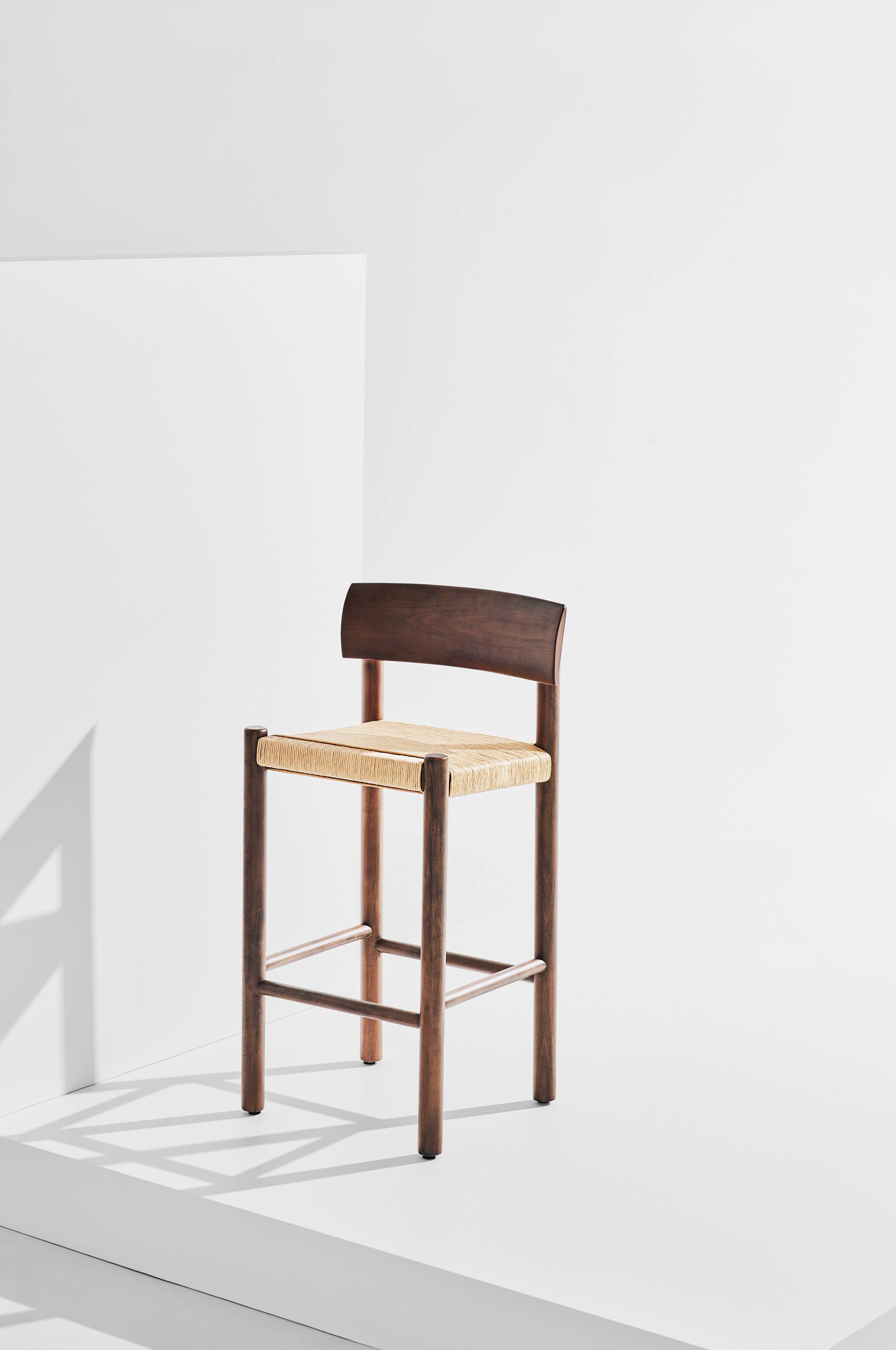 Klassischer Ausdruck, stilvolles Design und langlebige Materialien machen Ines zu einem Gewinner. Der Barhocker in Naturfarbe ist aus Eiche gefertigt, die mit einem seidenmatten Lack auf Wasserbasis behandelt wurde. Der schwarze Barhocker ist ebenfalls aus Eiche, die mit Pigment lackiert wurde, was die Maserung dezent erscheinen lässt. Der walnussfarbene ist aus Buche mit einer schönen Walnussbeize. Alle Farben haben eine Sitzfläche aus gedrehter Papierkordel. Die Sitzfläche wurde auf eine einfache und ansprechende Weise umwickelt. Ines ist ein Möbelstück, das die Atmosphäre eines ganzen Raumes verändern kann.