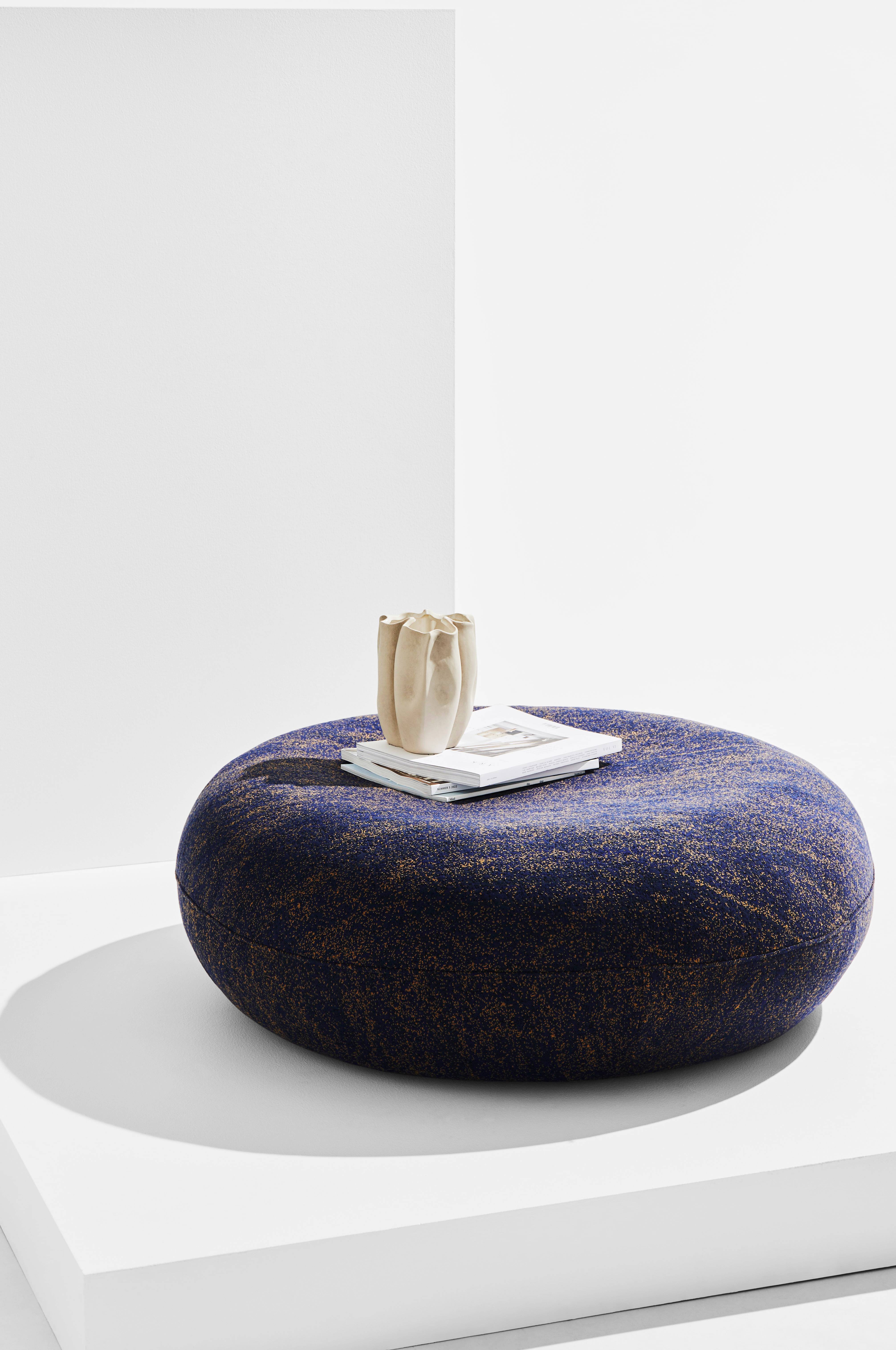 Ein Sitzpouf in schöner runder Form mit einem gemusterten Jerseybezug. Der Pouf ist das Traummöbel für alle, die es sich gerne zu Hause gemütlich machen, denn er lässt sich im Handumdrehen von einem bequemen Fußhocker in eine zusätzliche Sitzgelegenheit oder einen extra Couchtisch verwandeln. Und er lässt sich leicht versetzen. Der Pouf besteht aus einem Korpus aus FSC-zertifiziertem Kiefern- und Sperrholz und einer Polsterung aus Kaltschaum. Der Jerseybezug hat ein garngefärbtes Muster und dank des Stretchanteils eine ausgezeichnete Passform. Der Bezug ist nicht abnehmbar.