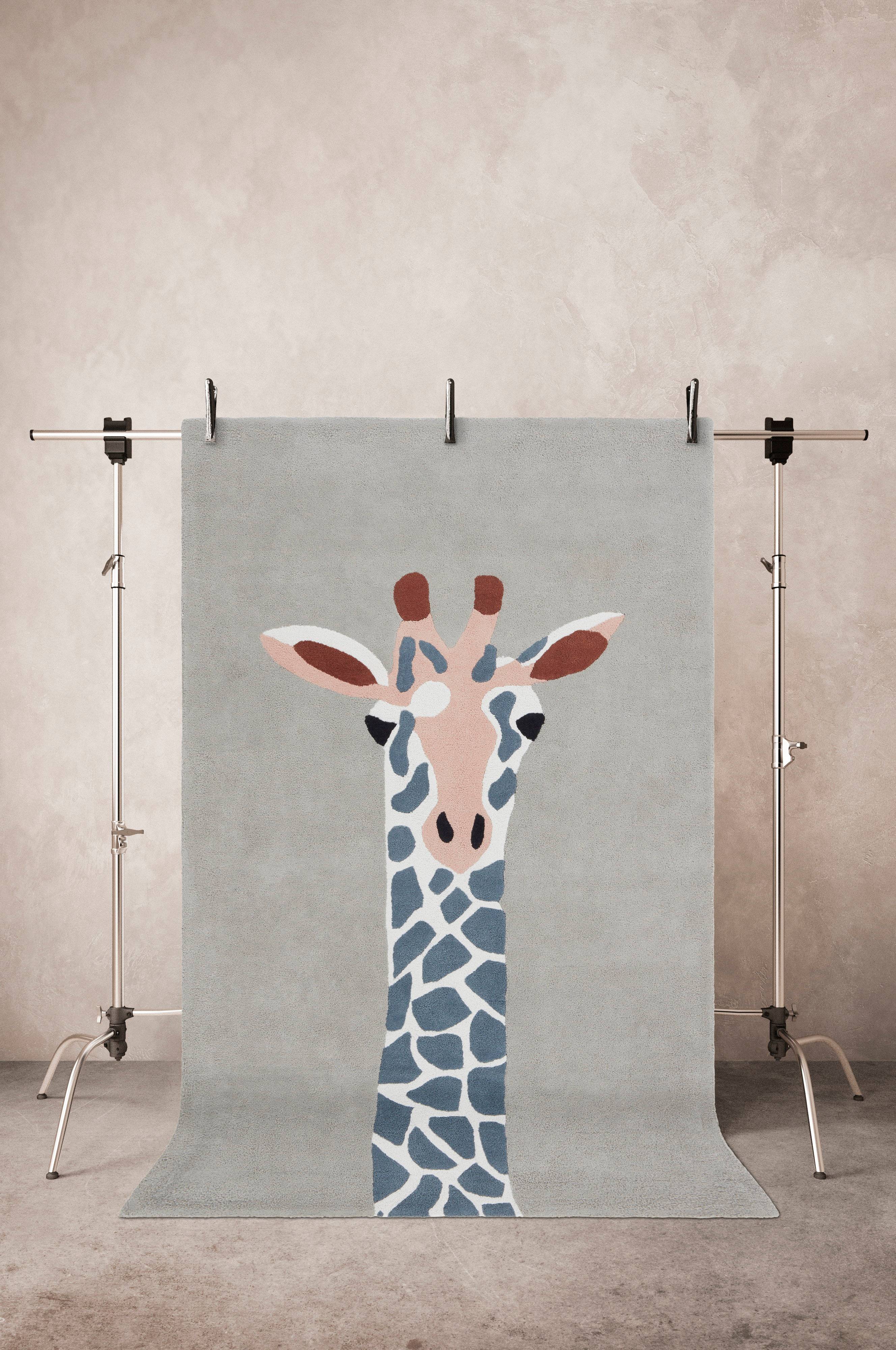 Herrlicher handgetufteter Teppich aus Bio-Baumwolle, mit effektvollem Giraffenmotiv. Der weiche Teppich dient als bequeme Unterlage beim Spielen auf dem Fußboden. Florhöhe 0,9‒1,1 cm. Dicke 1,4‒1,5 cm. 3200‒3400 g/m².