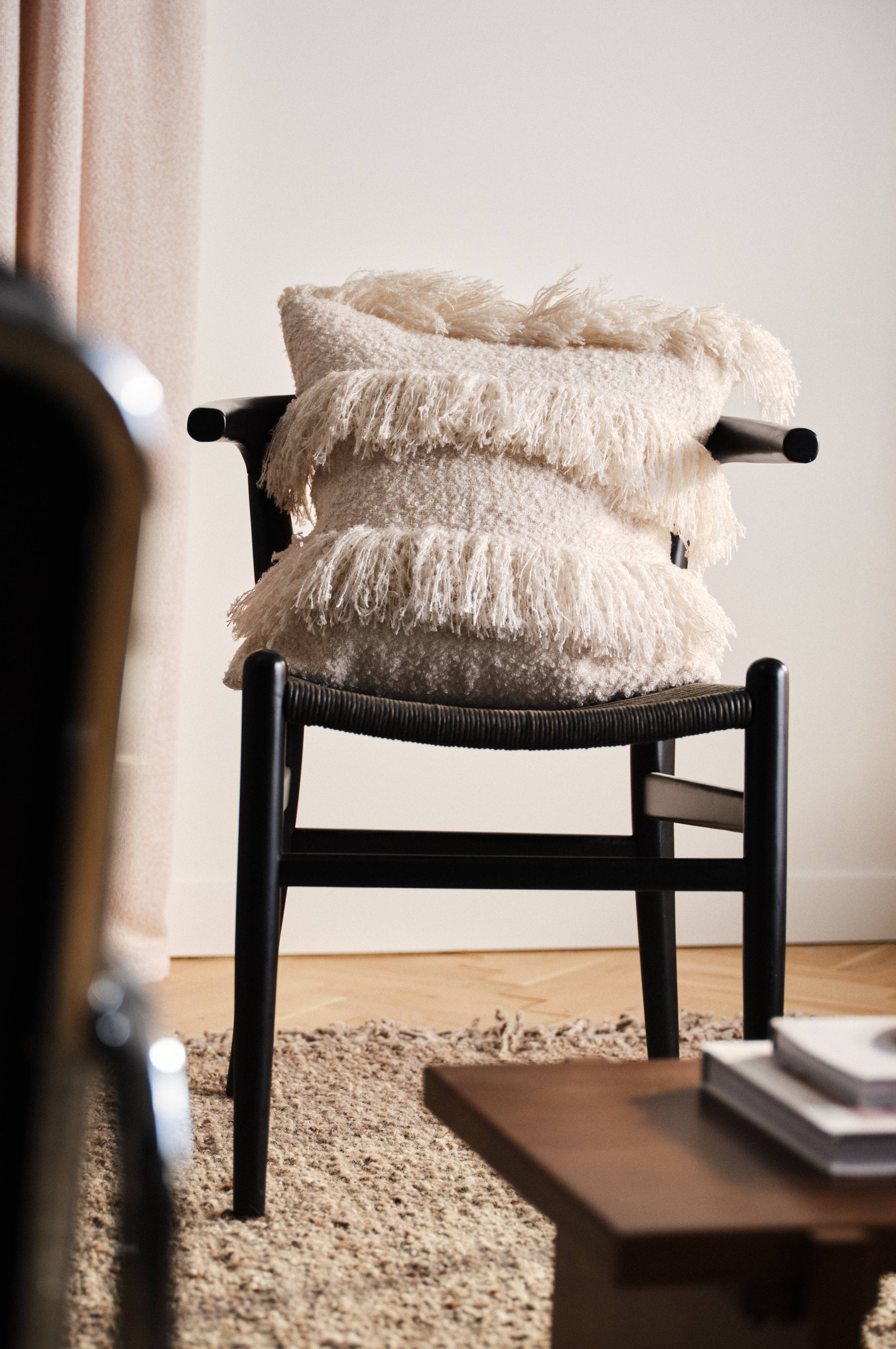 Der Kissenbezug RUFUS bringt mit seinen verspielten Fransendetails ein trendiges Element ins Spiel. Sie passt in jedes Wohnzimmer. Er macht Wohnräume gemütlich und einladend. Die Textur und das Design harmonieren und machen das RUFUS-Kissen perfekt für alle, die ein stilvolles und einladendes Design anstreben.