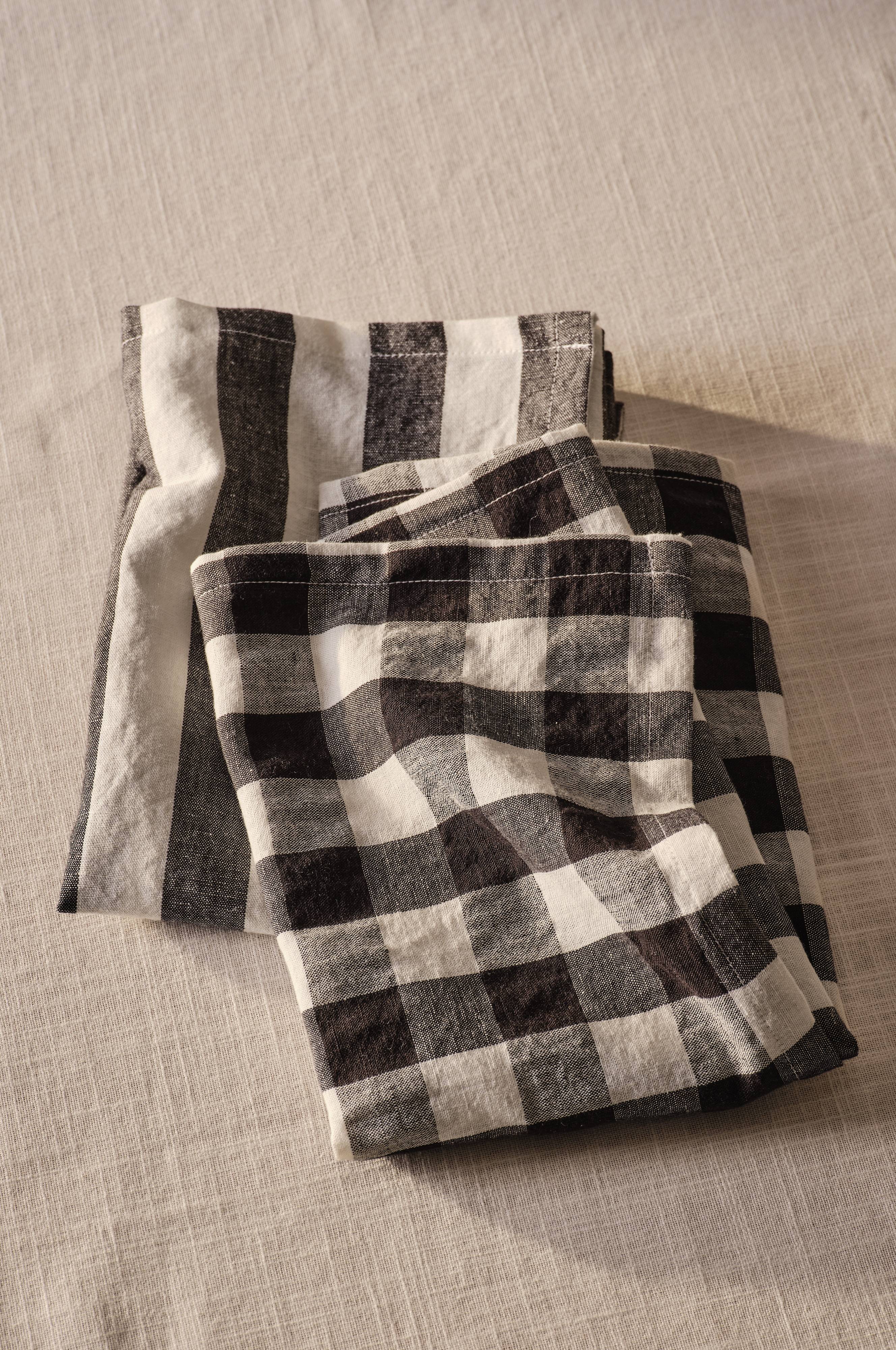 Das vierteilige SANNE Servietten-Set besteht aus einer Mischung aus zwei Streifen- und zwei Karomustern. Das Set ist aus einem Baumwoll-Leinen-Gemisch gefertigt und bringt einen Hauch von modernem Flair in dein Esszimmer. Als Teil der SANNE-Familie lässt es sich perfekt mit den passenden Artikeln kombinieren und sorgt für einen einheitlichen Look.