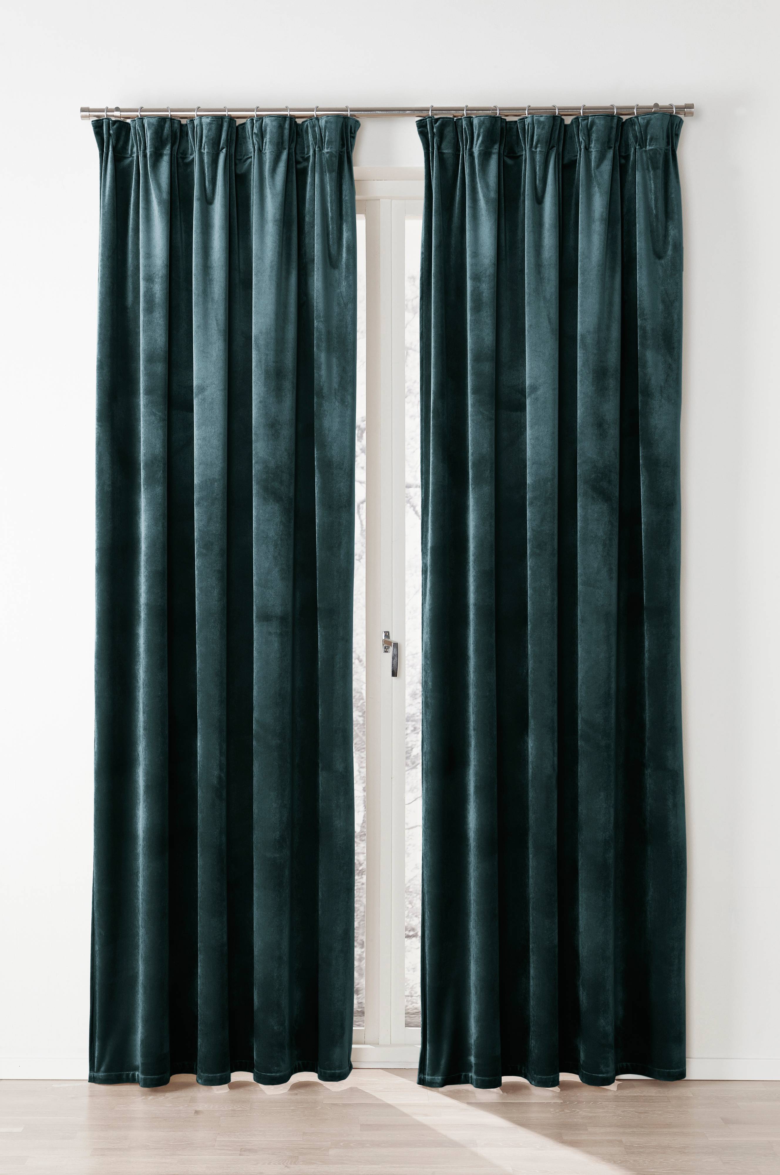 Diese Vorhangschals aus einfarbigem Samt sind mit einem Multifunktionsband versehen. Luxuriöse Vorhänge aus schwer fallendem, fein schimmerndem Samt verleihen jedem Raum eine softe Optik. Bei diesem Samtvorhang bieten sich dir dank des Multifunktionsbands zwei Aufhängeoptionen. Damit kannst du das Modell ganz einfach an deinen Einrichtungsstil anpassen. Wahlweise mit verdeckten Schlaufen oder mit Gardinenhaken aufzuhängen.