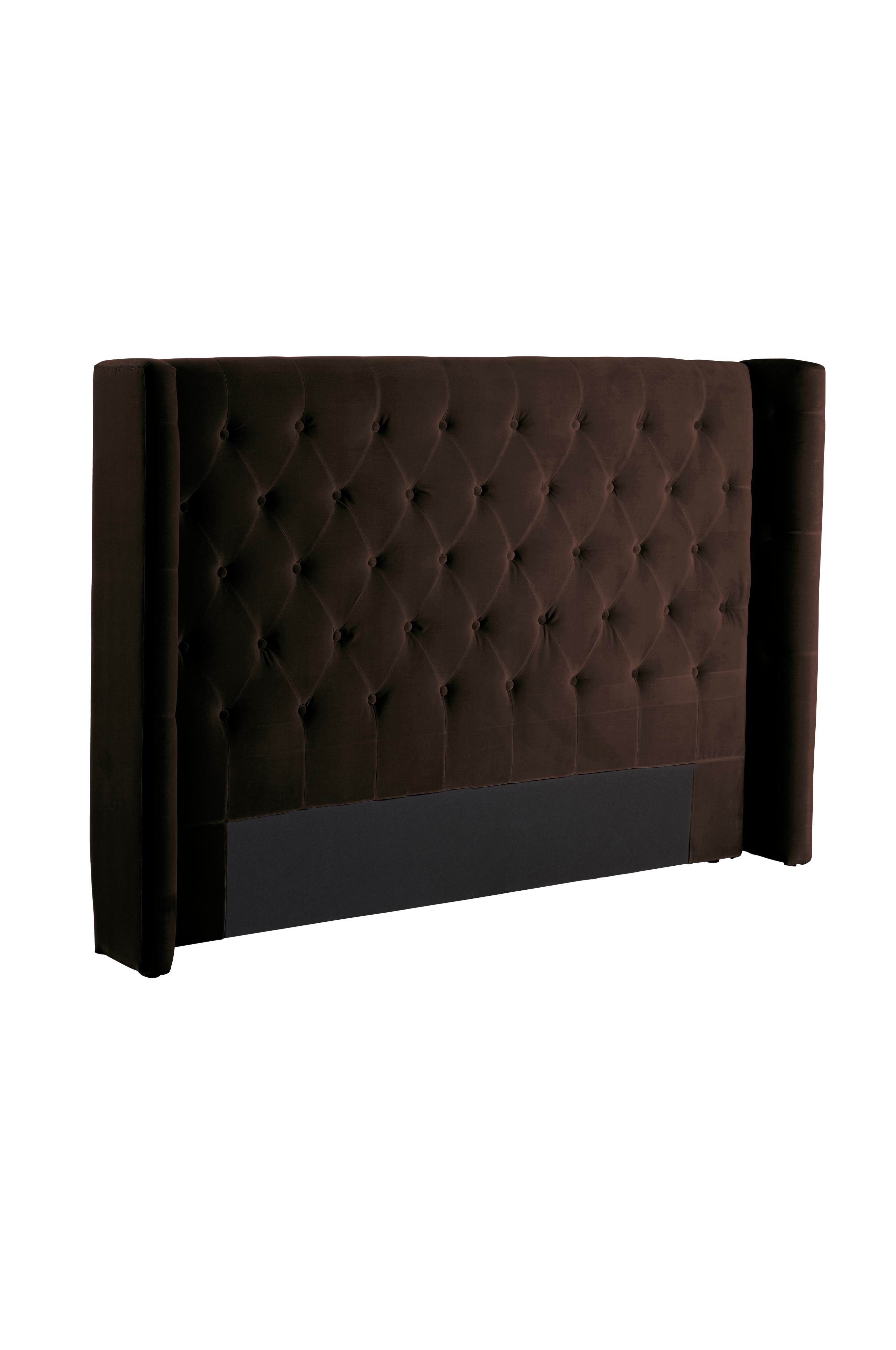 Frei stehendes Kopfteil mit Bezug und tief eingebrachten Knöpfen aus Samt. Mit dem kapitonierten Kopfteil mit Flügeln sorgst du in deinem Schlafzimmer für ein schickes Hotelambiente. Komplett aus dem feinsten Samt aus Baumwollmischung.