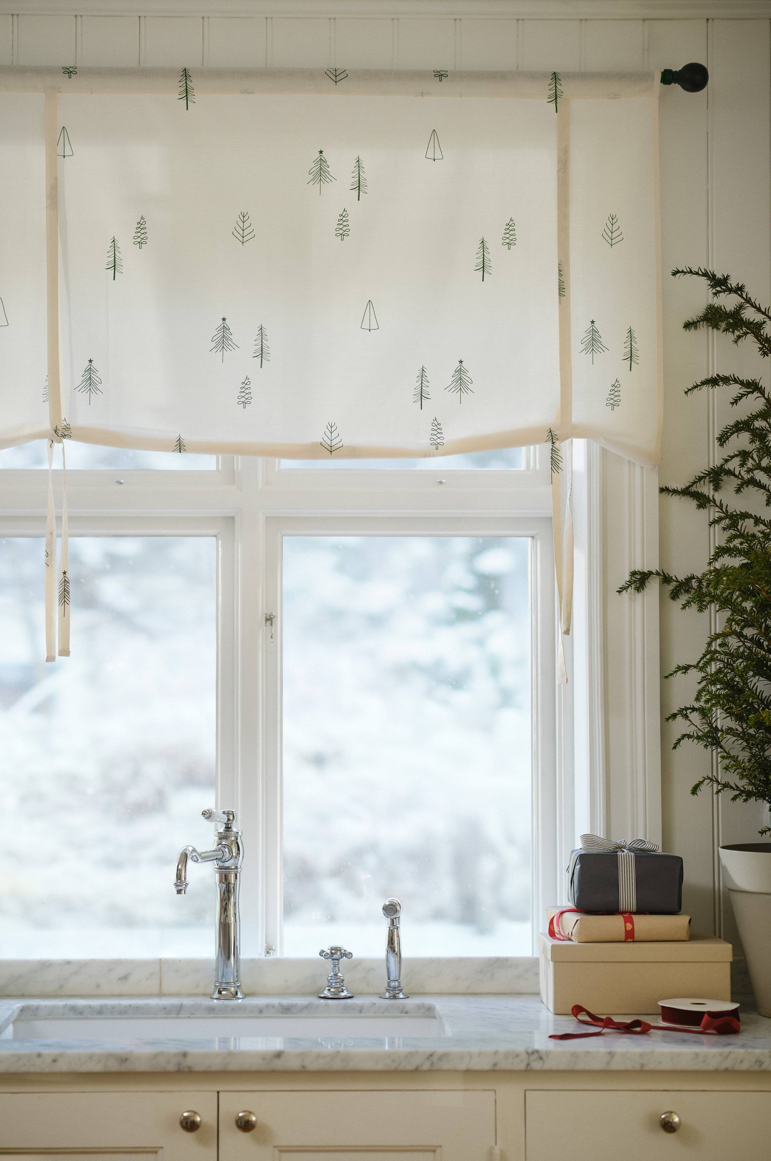 Der SKOG-Vorhang bietet mit seinem Baumwollstoff und den mit Pigmenten bedruckten Tannenbäumen einen reizvollen skandinavischen Weihnachtsanstrich. Dieser aufrollbare Vorhang schafft ein ruhiges Ambiente in deinem Zuhause und verbindet natürliche Elemente mit modernem Design. Verwandle deinen Wohnbereich mit der subtilen Eleganz und der nordischen Inspiration der SKOG-Gardine.