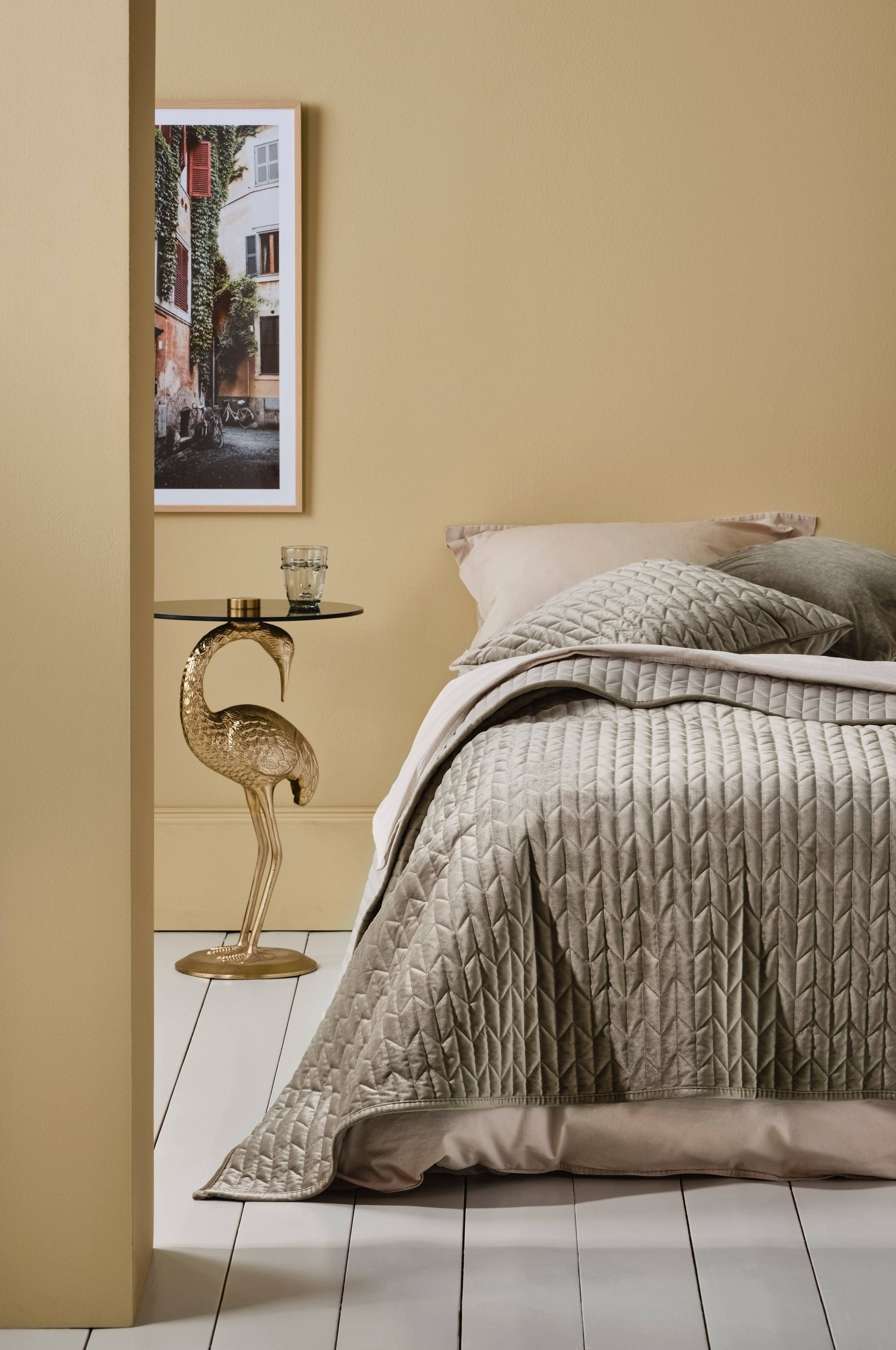 Tagesdecke aus gequiltetem Samt mit dekorativen Nähten und Einfassung.