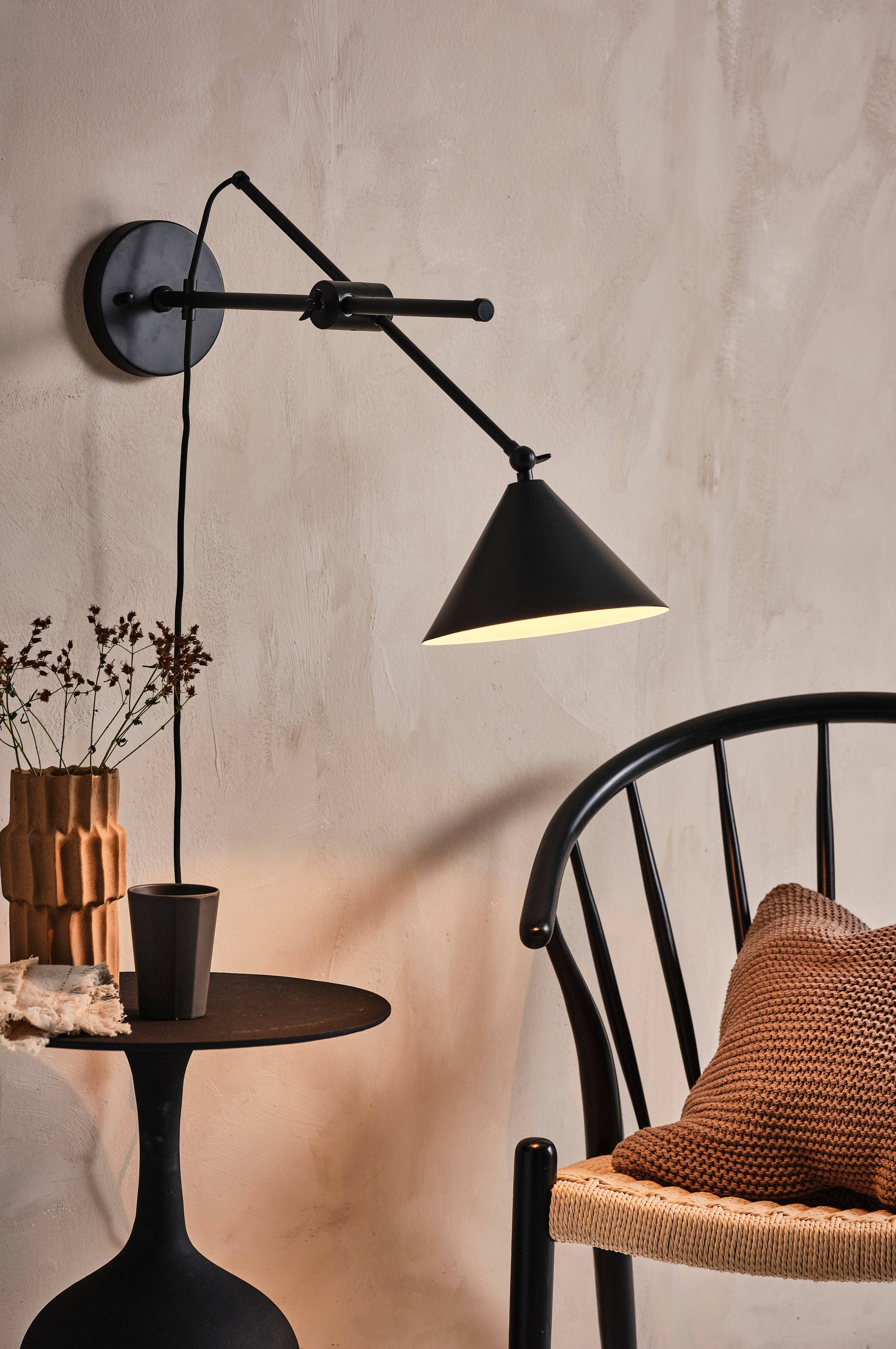 Metall-Wandleuchte mit verstellbarem Arm und Schirm. Diese moderne, außergewöhnliche Wandleuchte mit gezwirbeltem Textilkabel verströmt einen Hauch Luxus. Kabellänge 25/150 cm. Ohne Leuchtmittel.