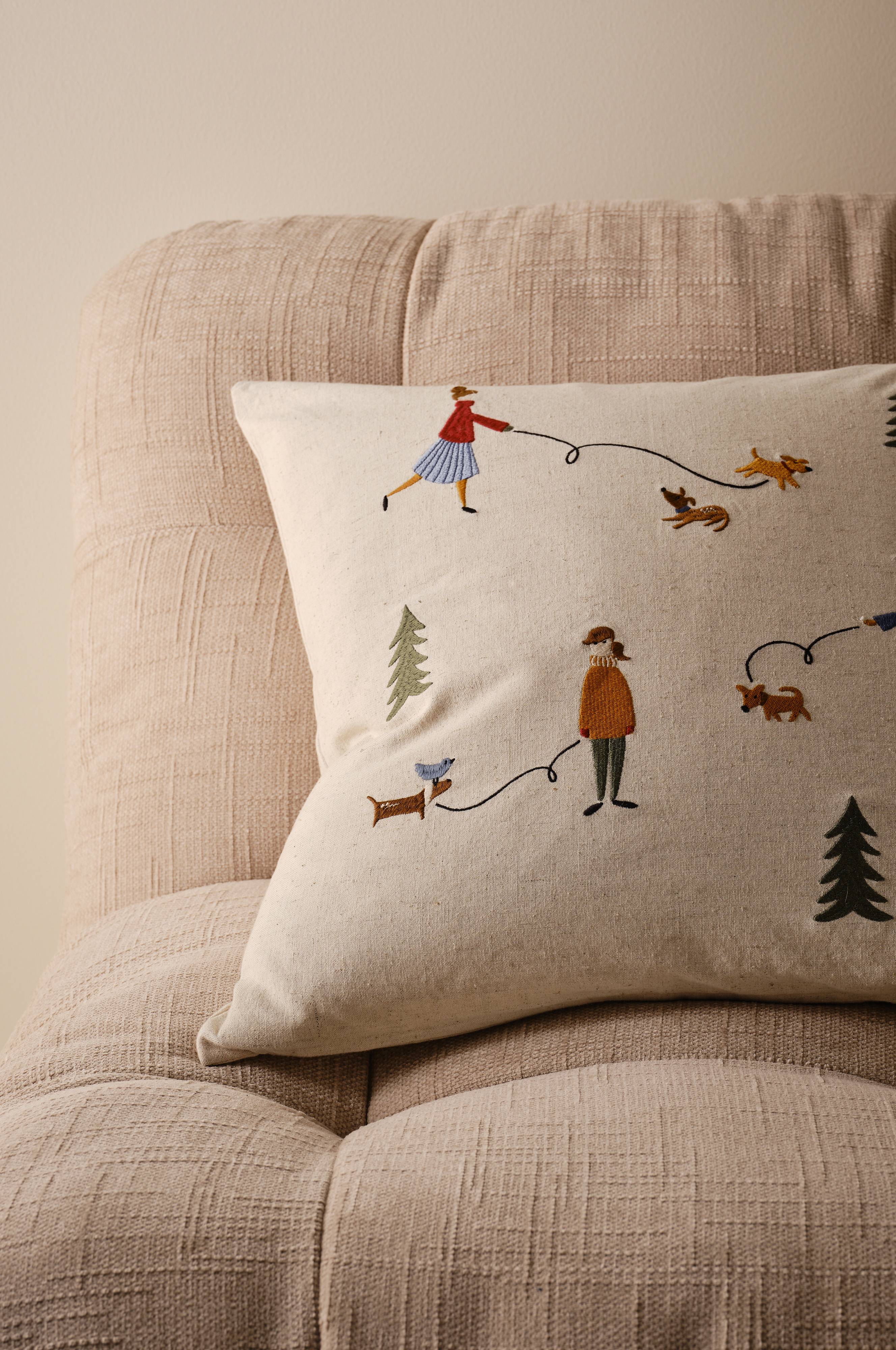 Der Kissenbezug WALKIE verleiht jedem Raum mit seiner bezaubernden Stickerei mit verspielten Szenen Charme. Der gewaschene Bezug aus einem Baumwoll-Leinen-Gemisch sorgt für Komfort und Stil. Der passende verdeckte Reißverschluss sorgt für ein elegantes Finish, während die unifarbene Rückseite für Vielseitigkeit sorgt. Diese Decke ist perfekt für alle, die ihren Raum mit Kreativität und Textur aufpeppen wollen und bringt einen lebendigen Touch in deine Einrichtung.