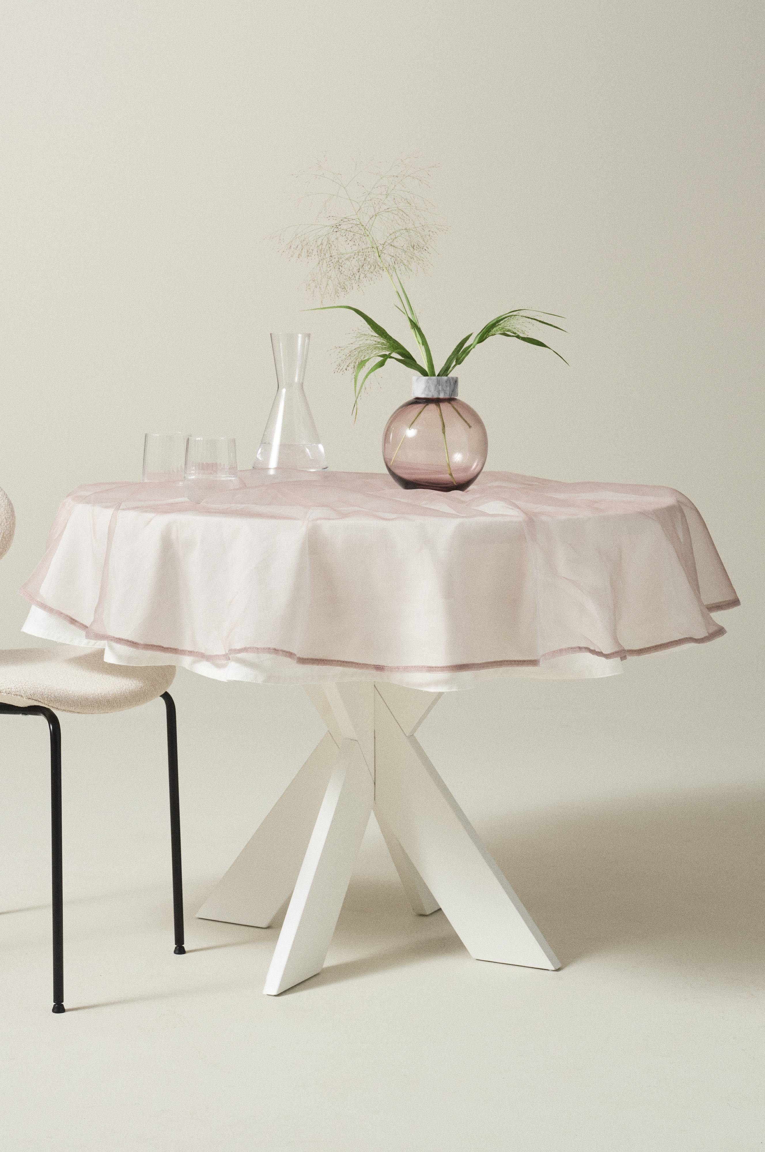 Runde Tischdecke aus einfarbigem Organza (Polyester/Polyamid). Organza ist ein transparenter, leichter Stoff, der sehr festlich wirkt. Diese Decke ist solo sehr elegant, aber z.B. auch mit einer Leinentischdecke zu einem interessanten Materialmix kombinierbar.