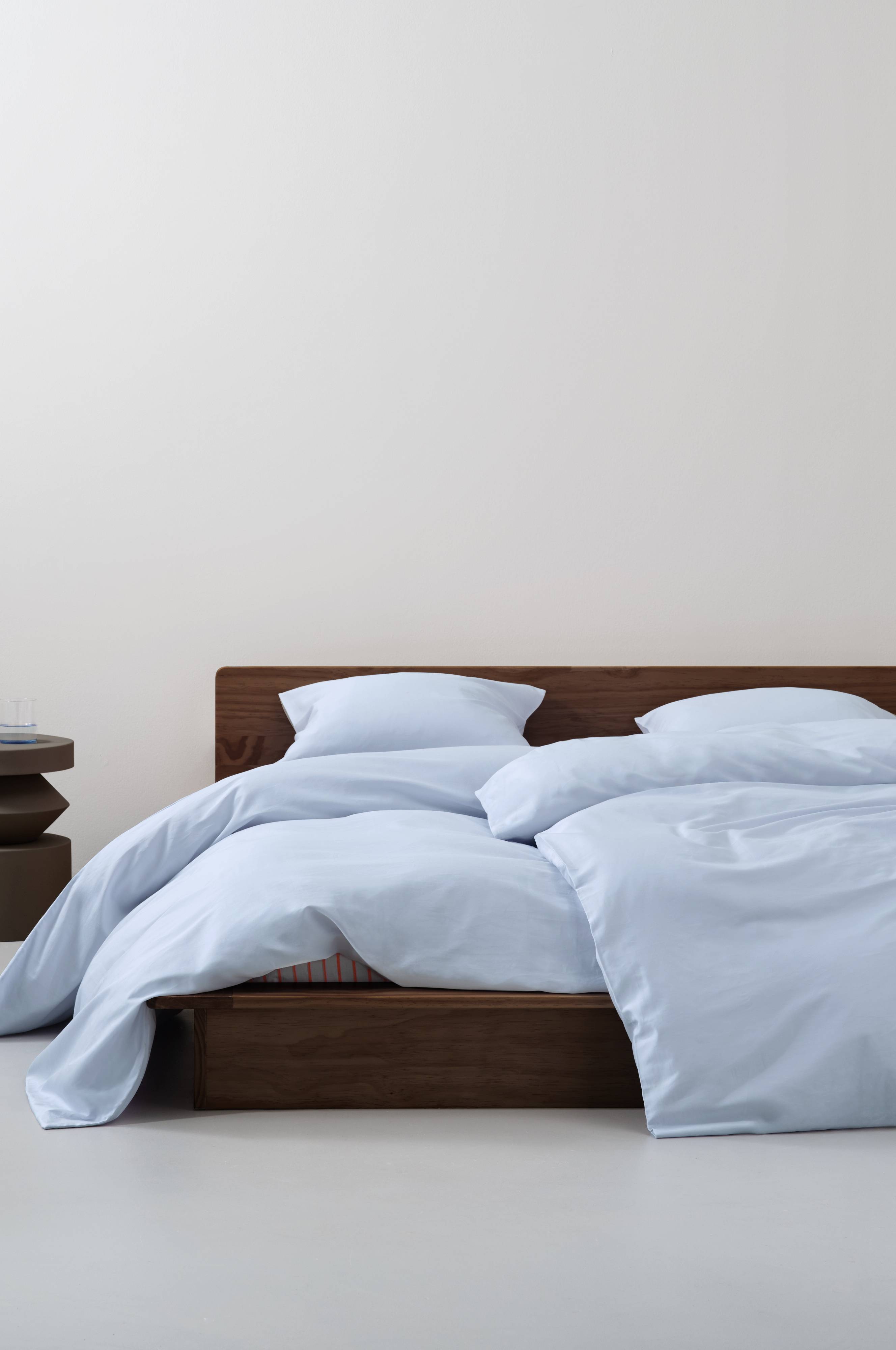 Einfarbiger Bettbezug aus exklusivem Satin, hergestellt aus Bio-Baumwolle. Satin ist eine Webtechnik, die einen wunderbar glatten, weichen und geschmeidigen Stoff ergibt. Mit dieser Technik gewebte Baumwolle ergibt einen Stoff mit feinem Glanz und luxuriösem Griff.